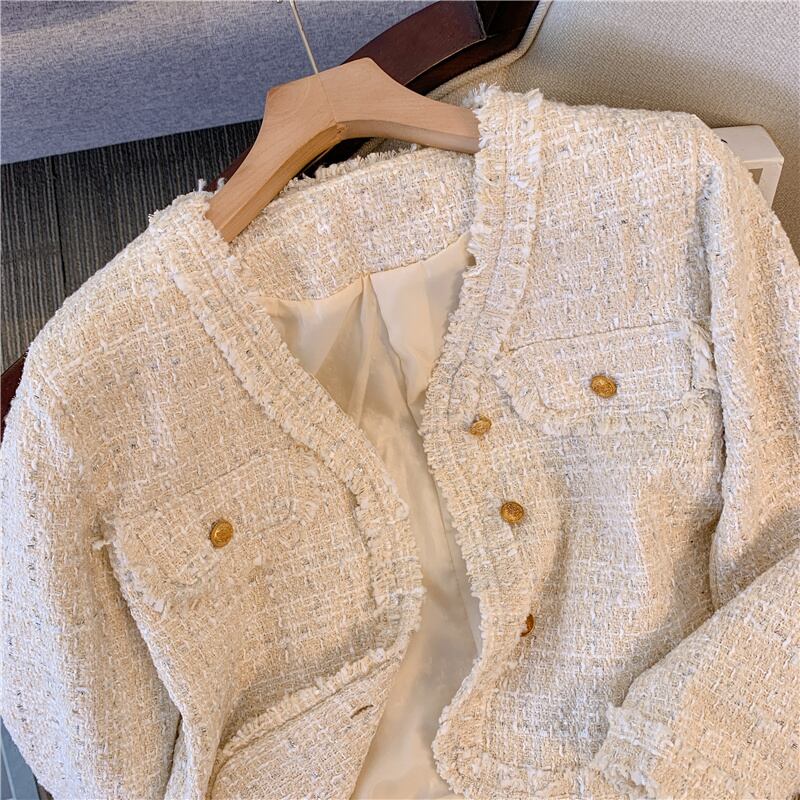 フレンチツイードジャケット秋冬ストリート小さ香りショートコートアウター ウィンター 冬物
