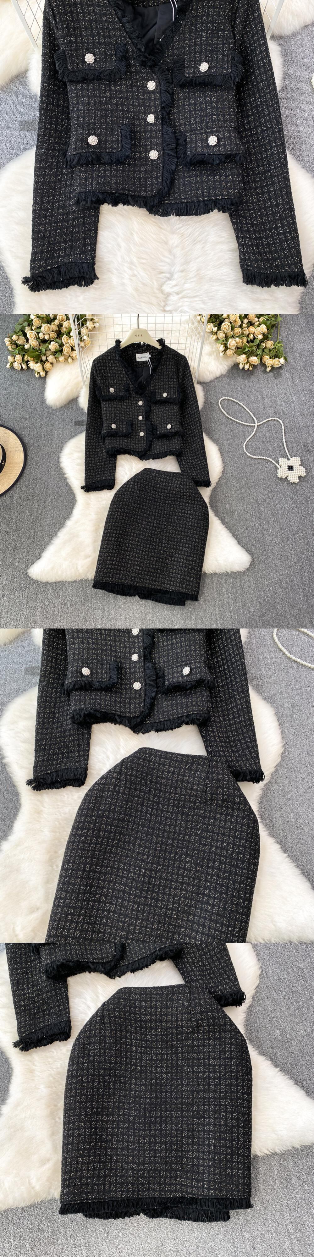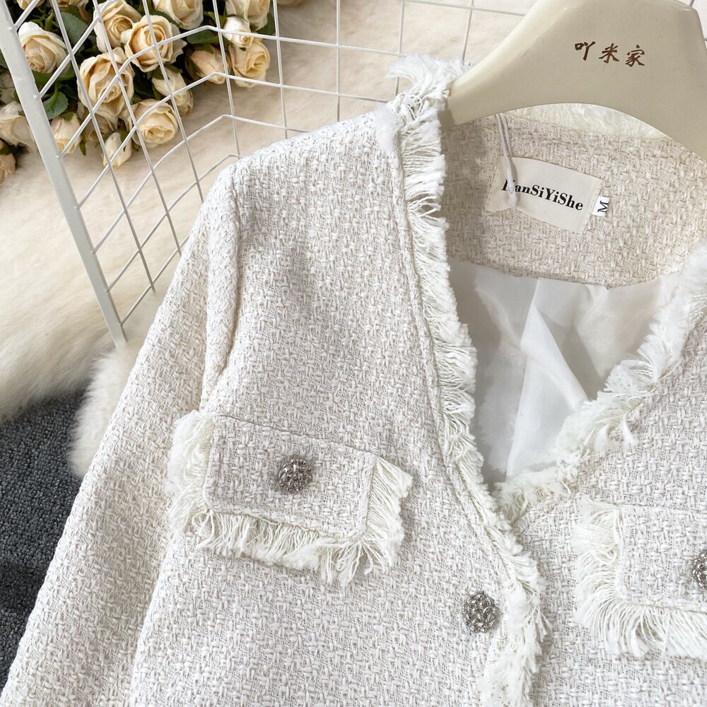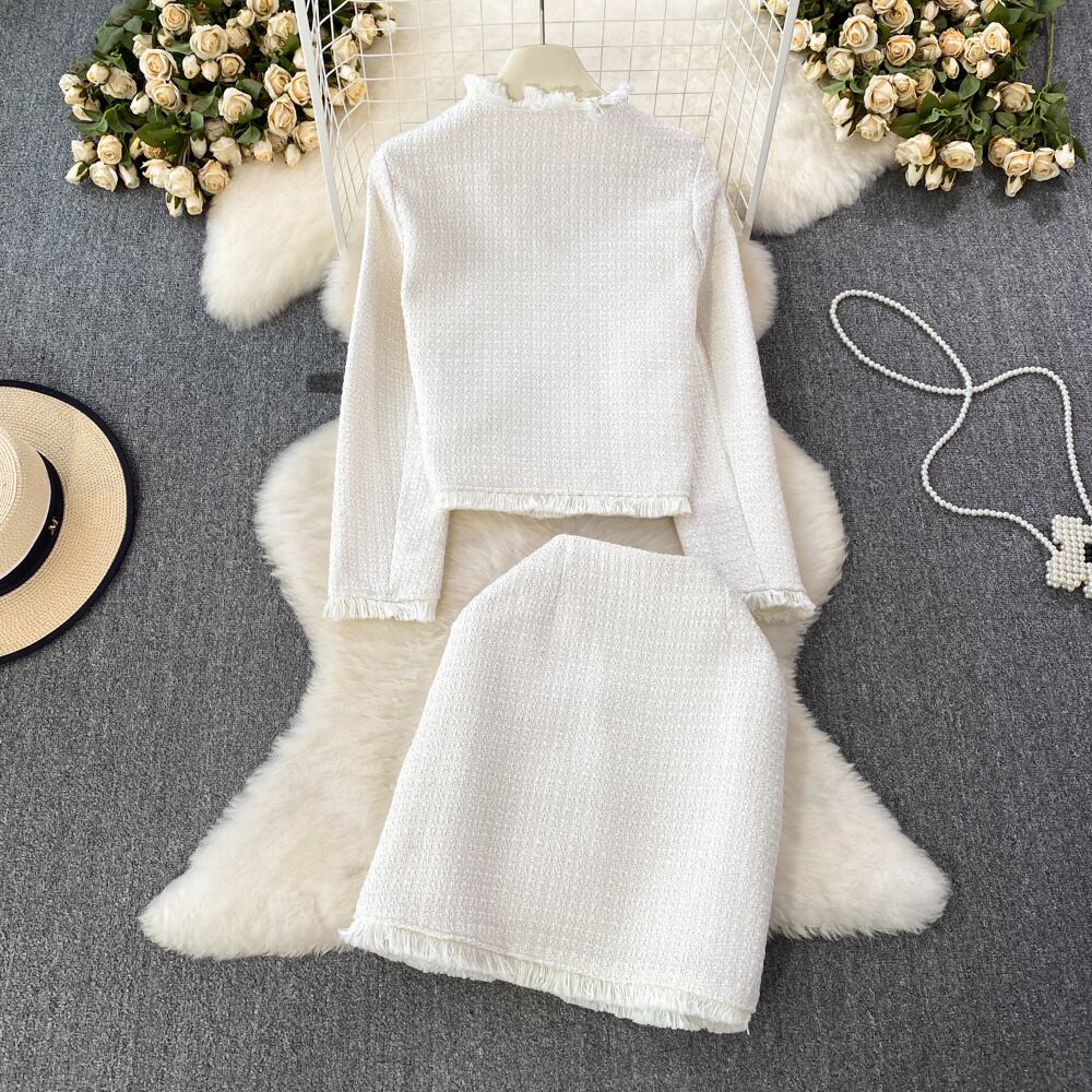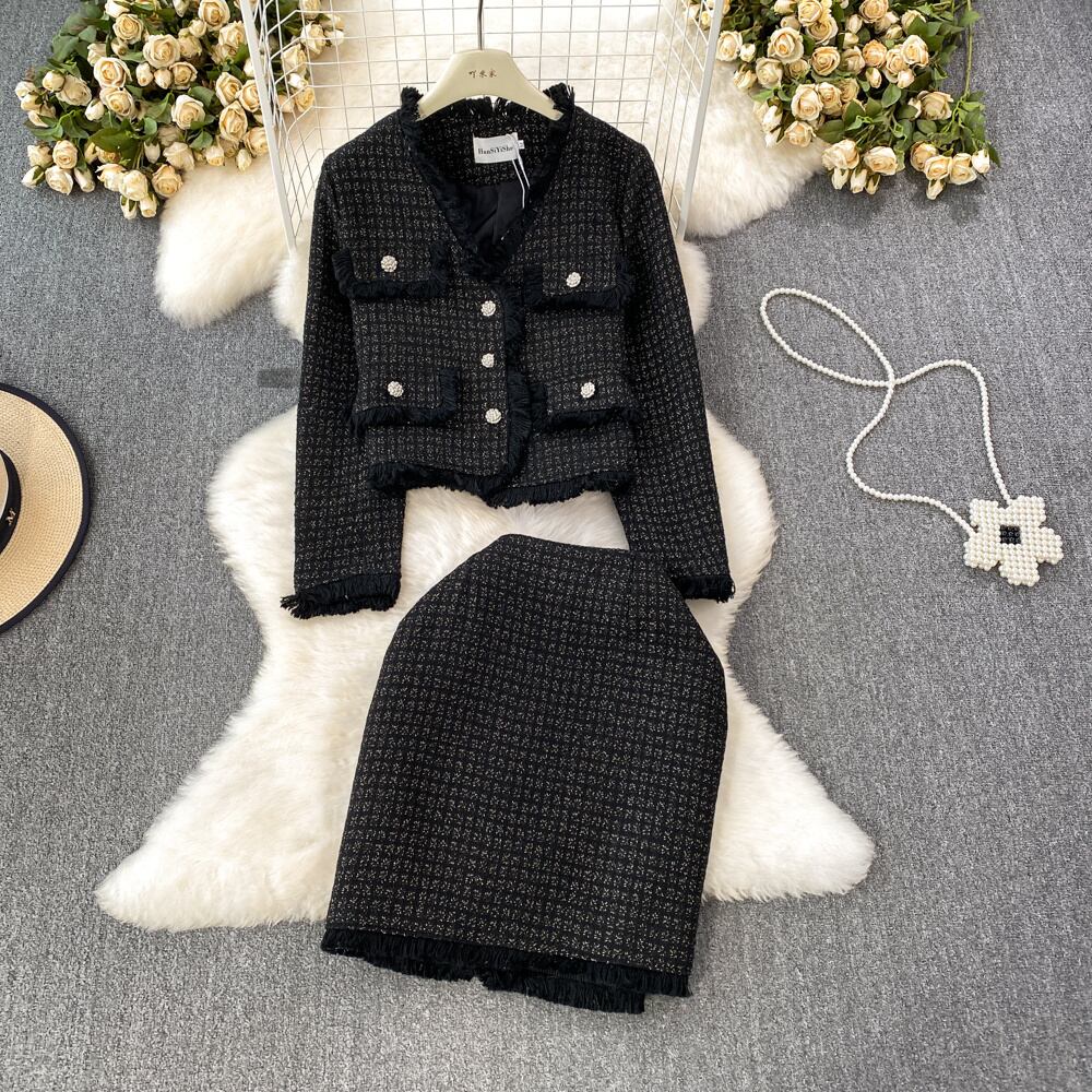 フランス小さフレグランスツイード 2 点セットジャケットコート + ミニスカートセット秋冬 2 ピース衣装 ウィンター 冬物
