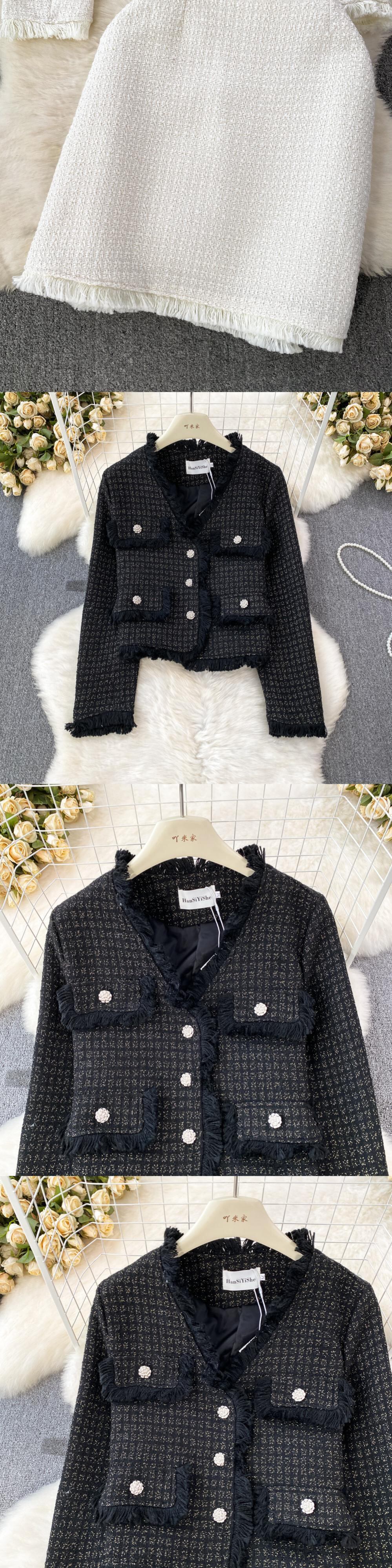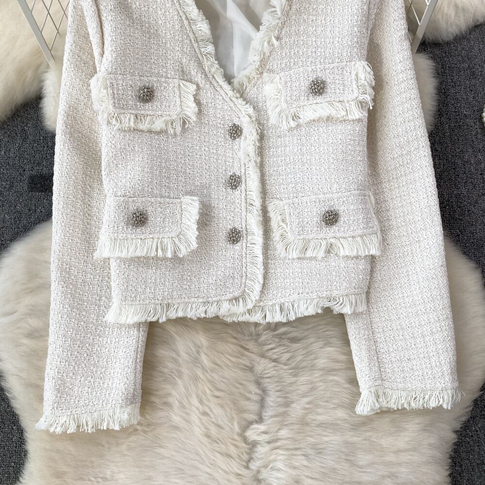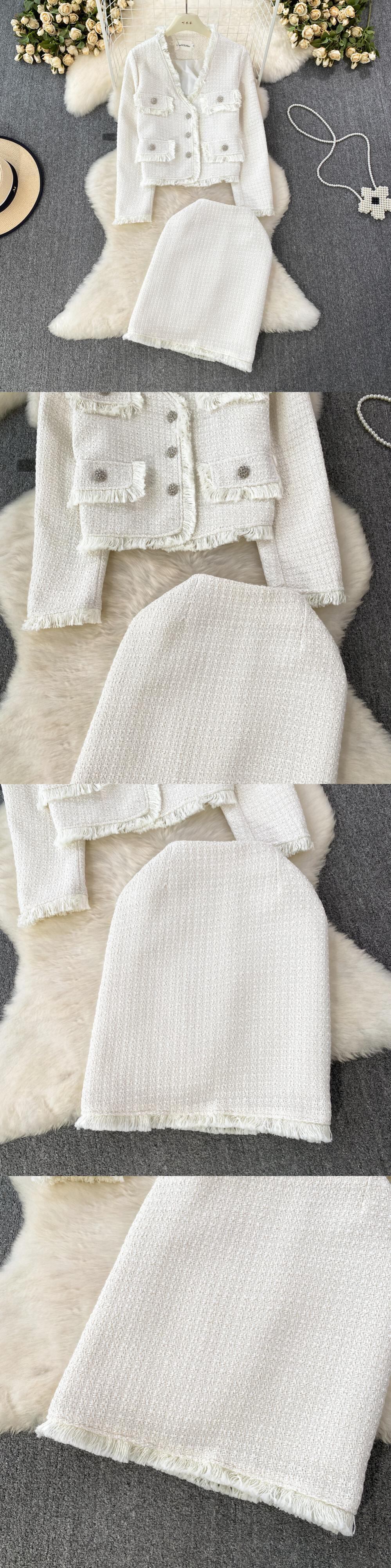 フランス小さフレグランスツイード 2 点セットジャケットコート + ミニスカートセット秋冬 2 ピース衣装 ウィンター 冬物