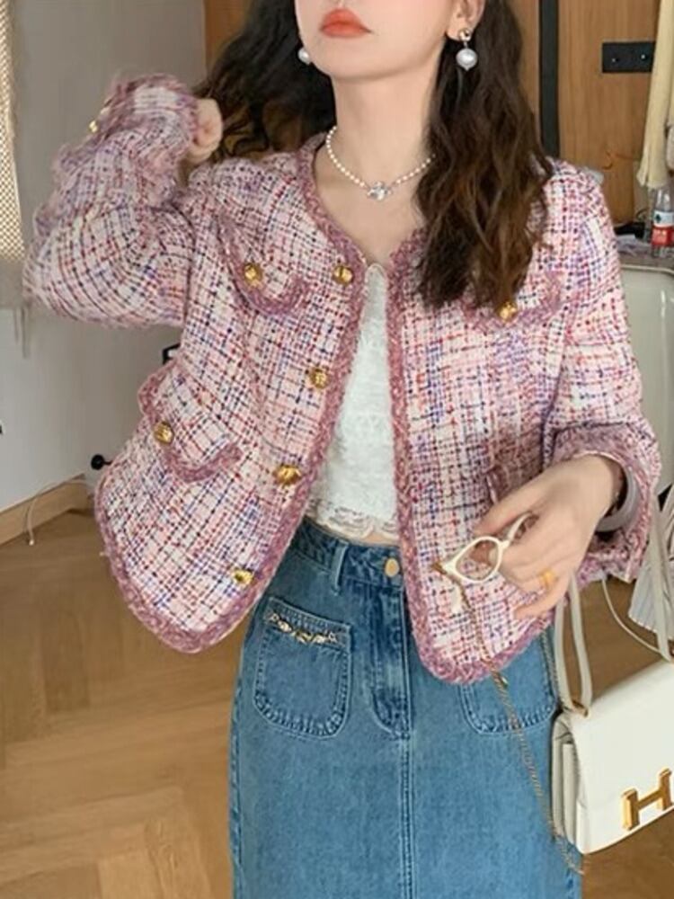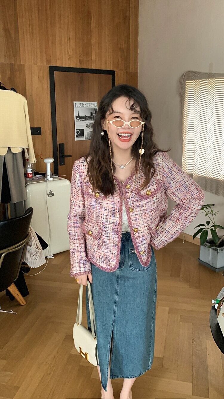フレンチスモールフレグランスツイードジャケット秋冬ウールショートコートアウター ウィンター 冬物