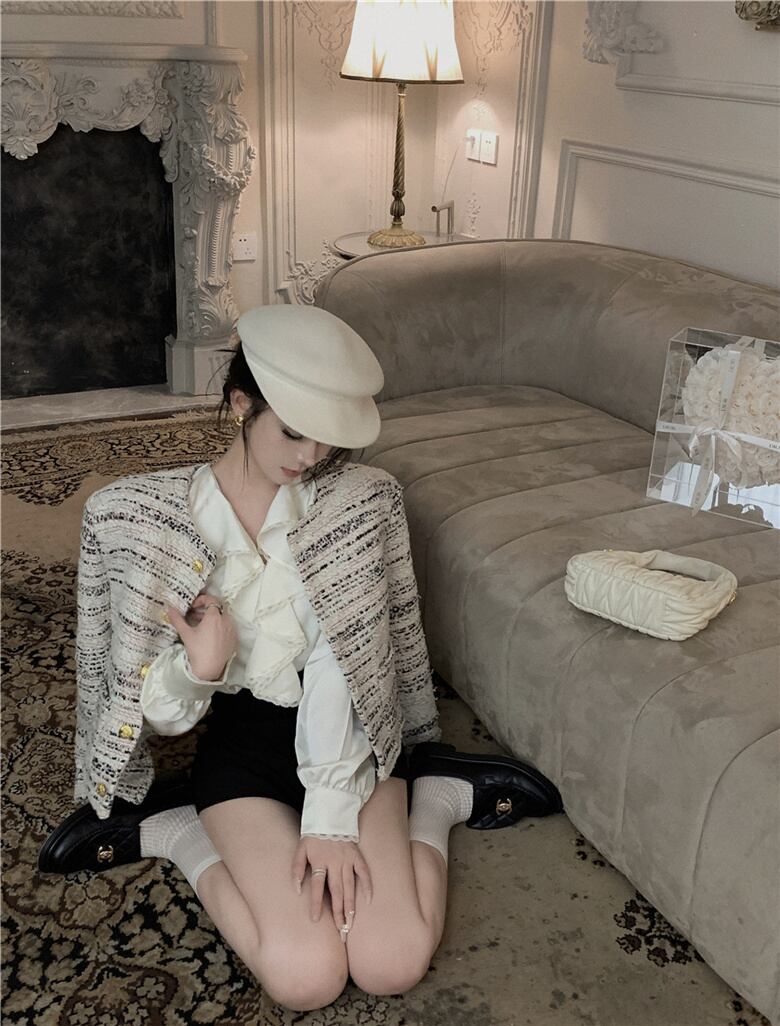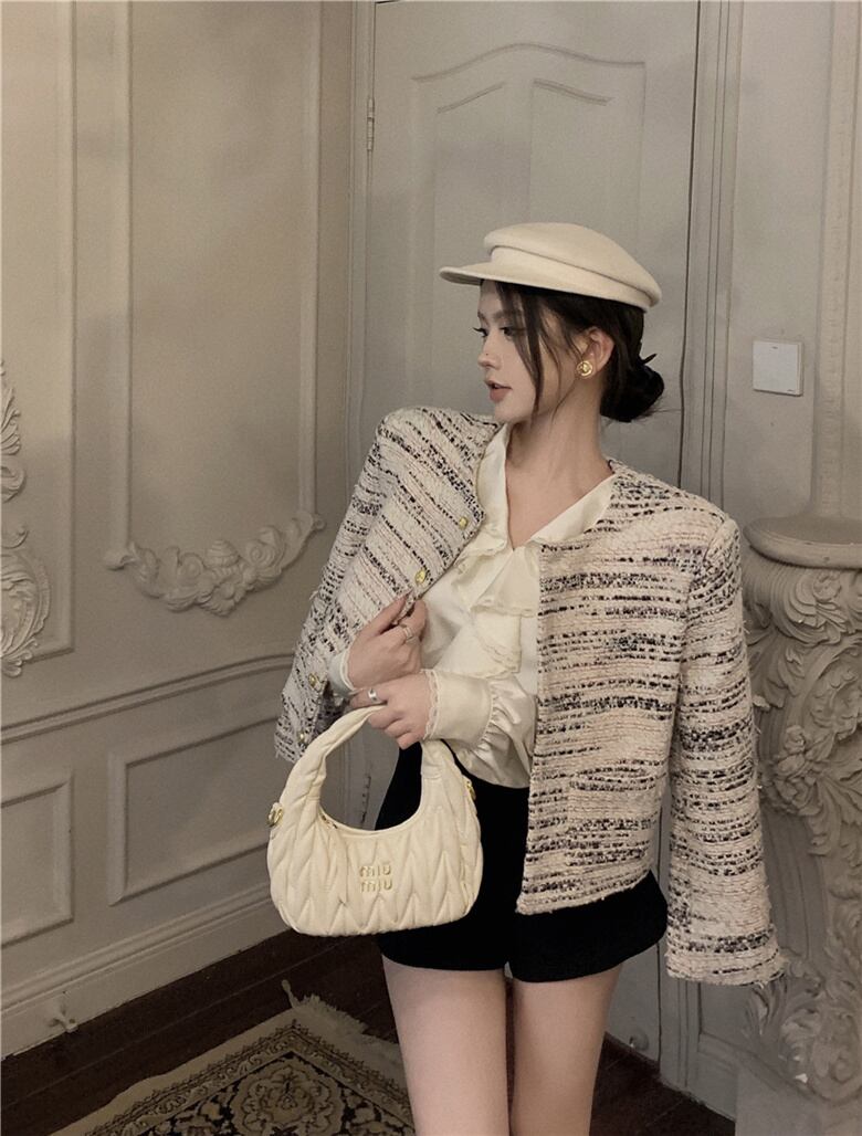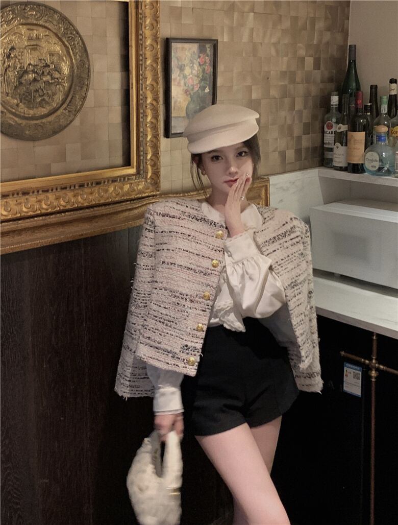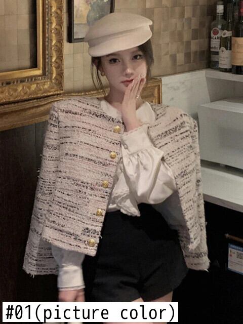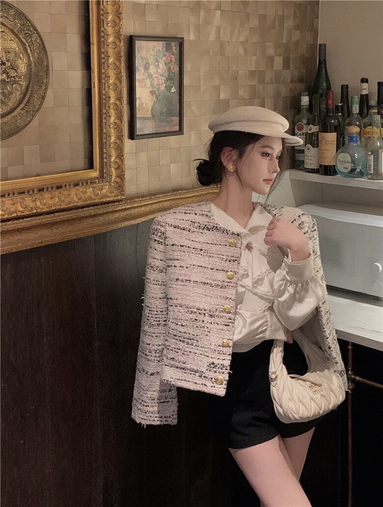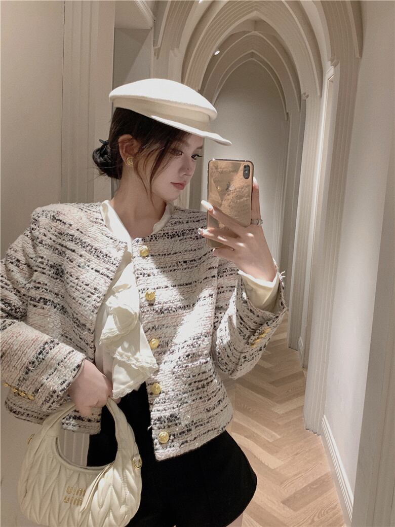 フランス小さ香りツイードジャケット秋冬高級ショートコートアウター Casaco オータム 秋物 ウィンター 冬物