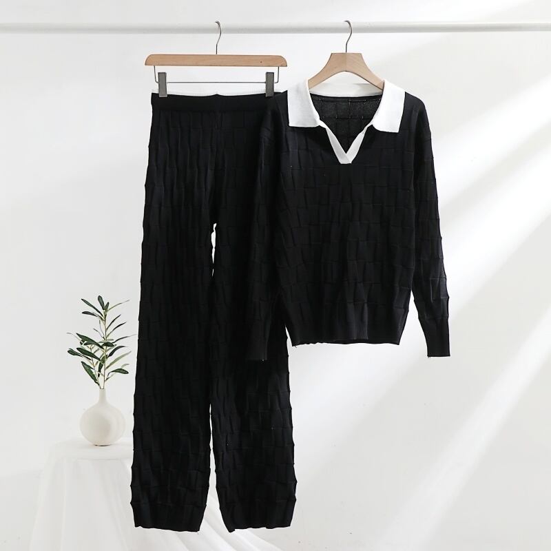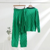 ストリートフレンチ小さ香りツーピースセットプルオーバーセーター + パンツセット秋冬ヨーロッパニット 2 ピーススーツ オータム 秋物 ウィンター 冬物 ヨーロピアン