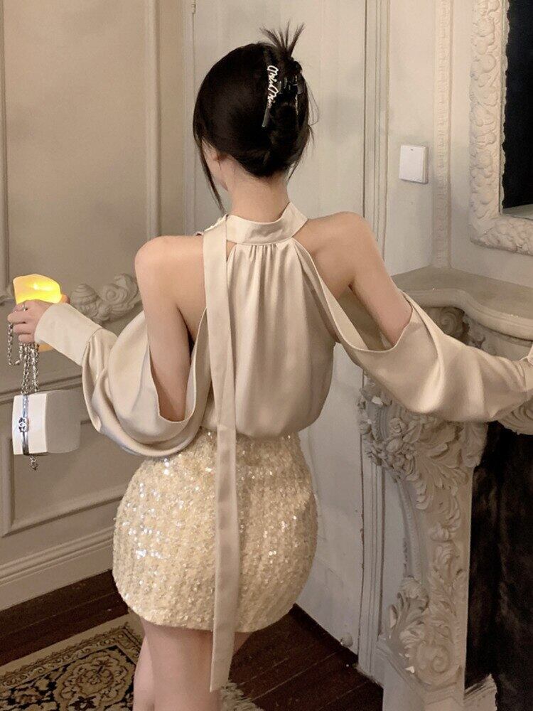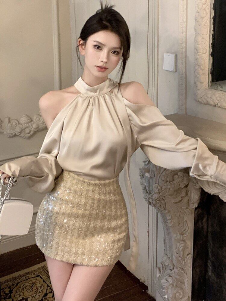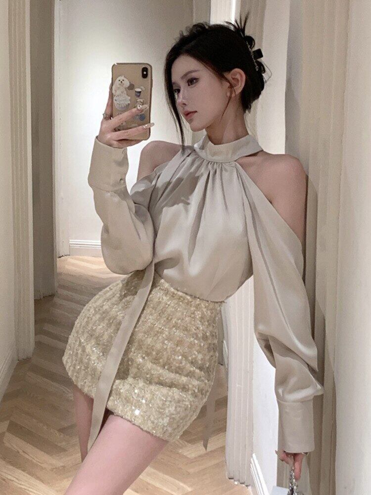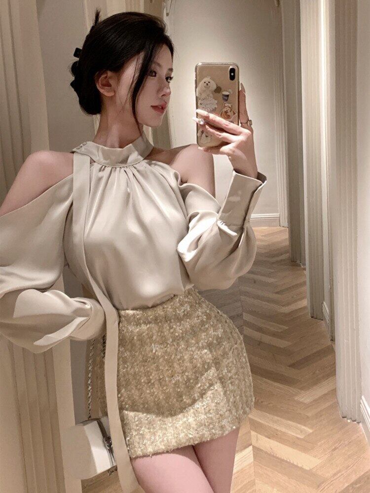 秋小さ香りツーピースセットシャツブラウストップ + スカートセットホットスイートセクシー 2 ピース衣装 Conjuntos Curtos 大人ガーリー スウィート キュート カジュアル オータム 秋物