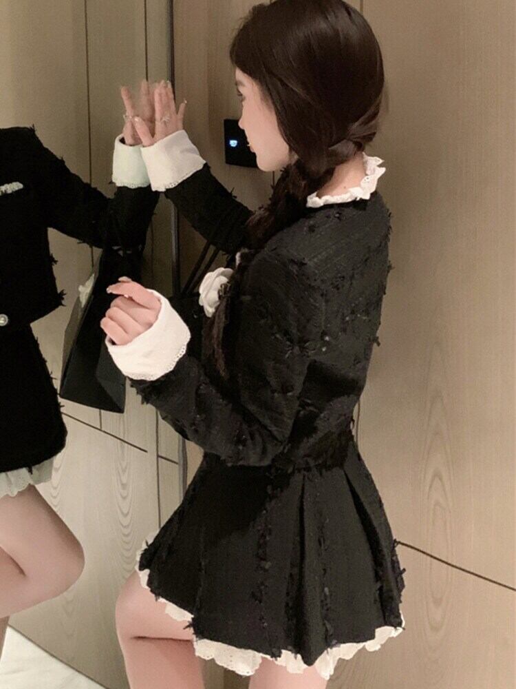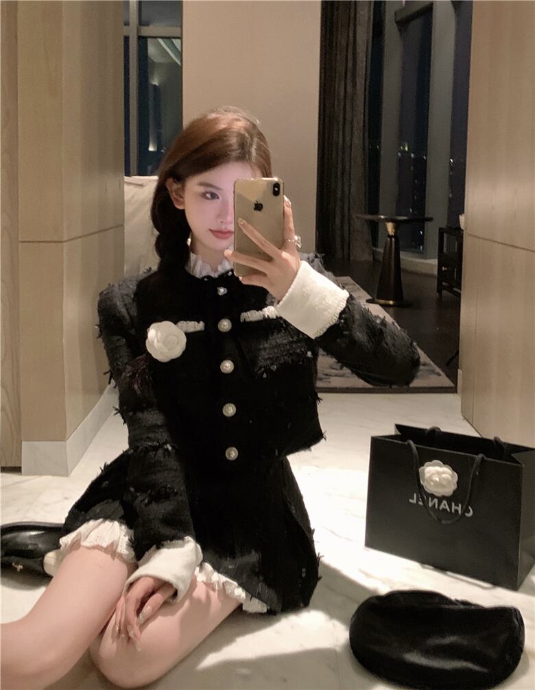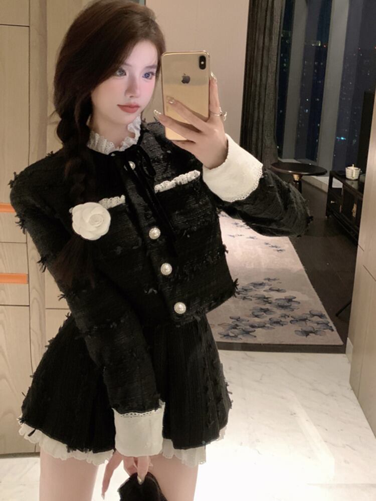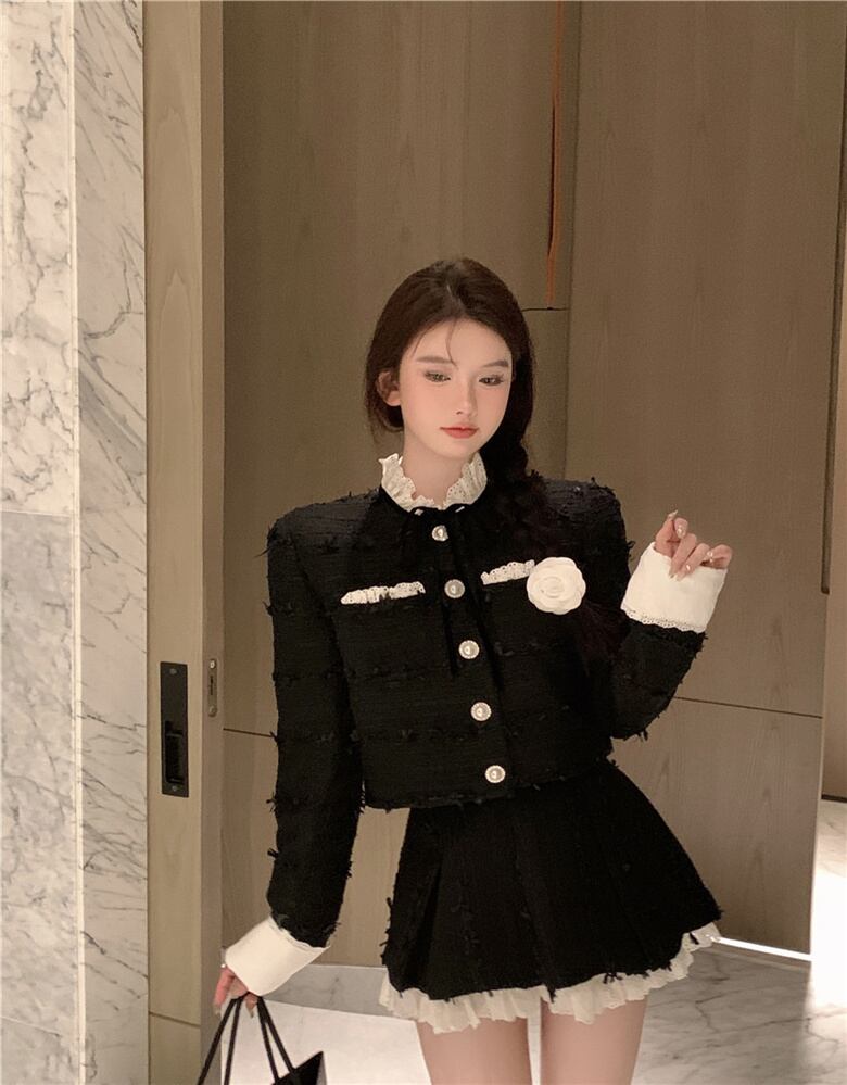フランス小さ香り 2 点セットショートジャケットコート + スカートスーツ甘い 2 点セット 大人ガーリー スウィート キュート カジュアル