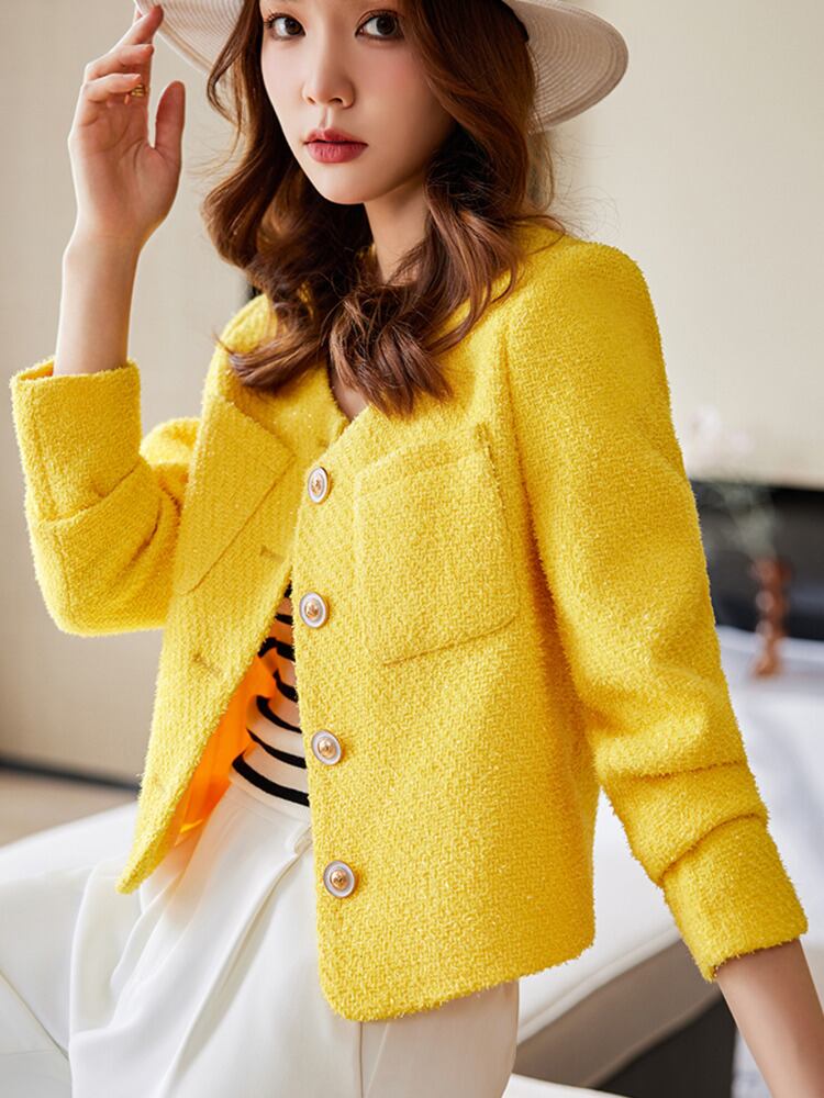 秋冬チェック柄ツイードジャケットコートウールショート casaco feminino Chaquetas para mujeres jaqueta feminina abrigo ウィンター 冬物 フェミニン