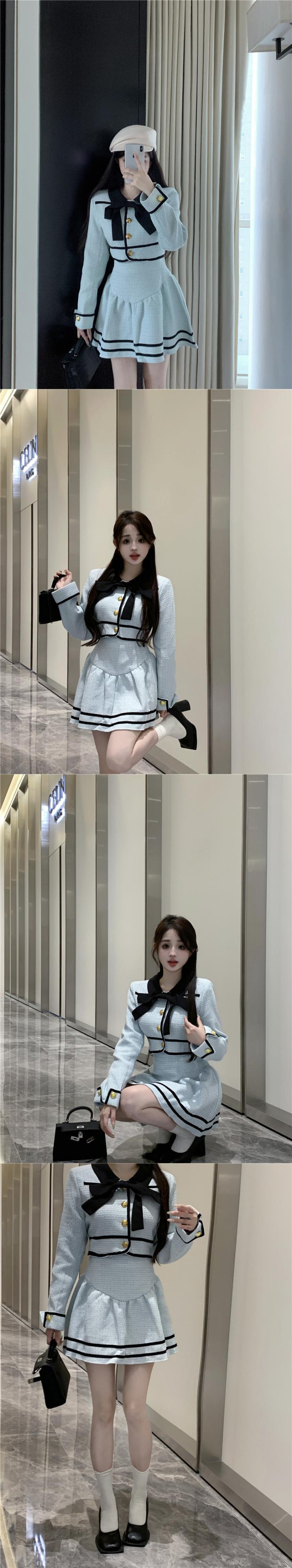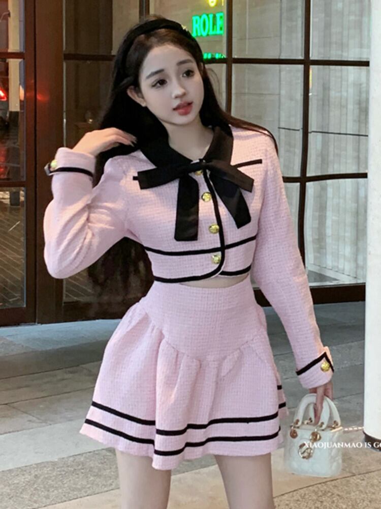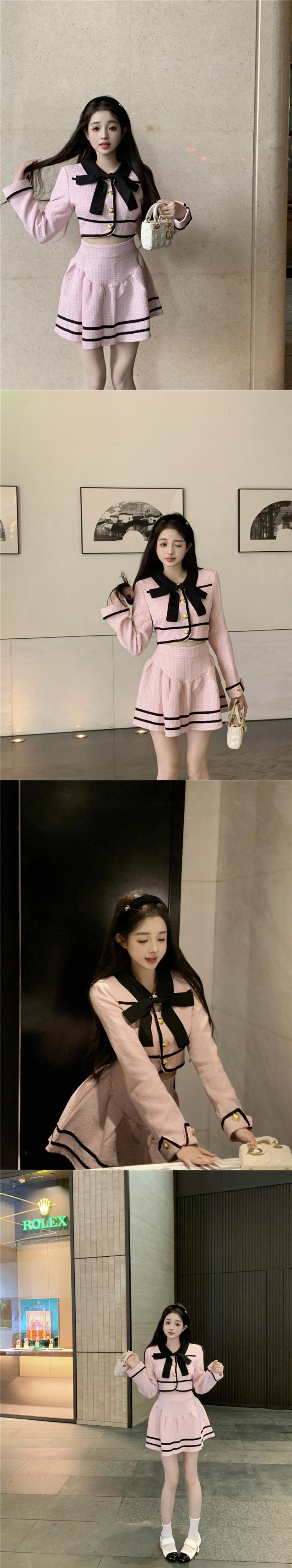 フレンチスモールフレグランス2点セット弓ショートジャケットコート+スカートスーツ甘い2点セット リボン 大人ガーリー スウィート キュート カジュアル