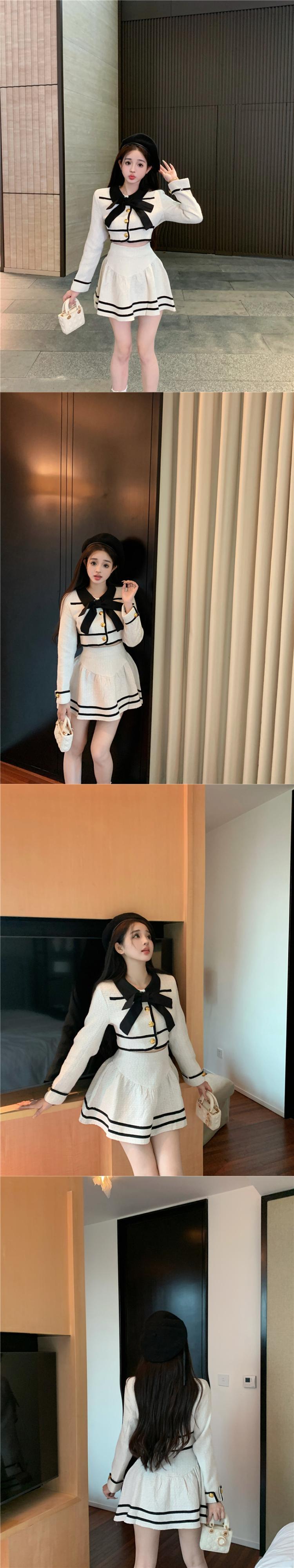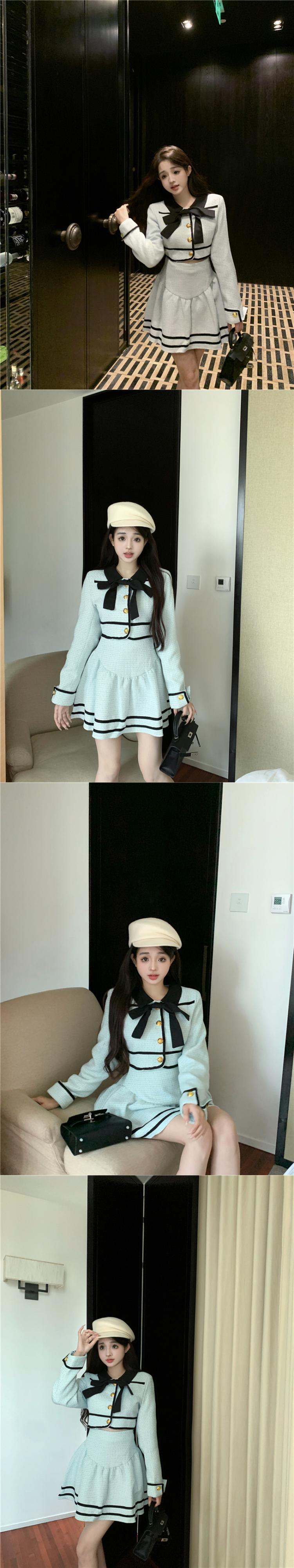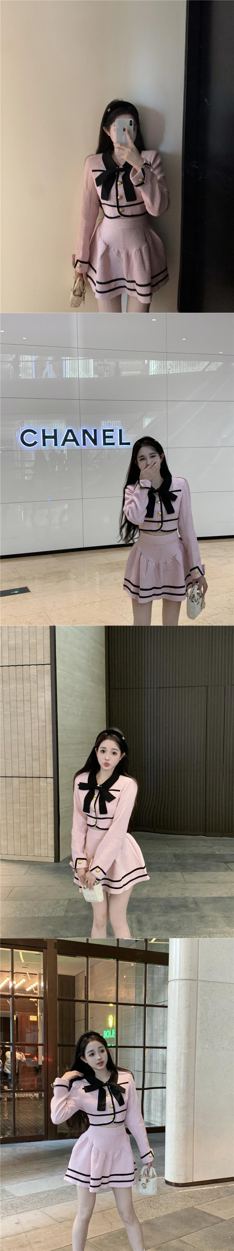 フレンチスモールフレグランス2点セット弓ショートジャケットコート+スカートスーツ甘い2点セット リボン 大人ガーリー スウィート キュート カジュアル