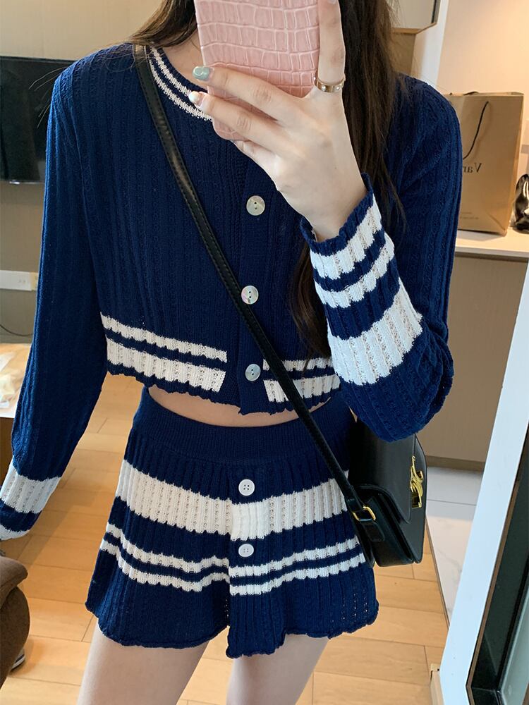 秋服装ツーピースセットニットカーディガントップスプリーツショートセット conjuntos cortos エレガンテスセーター エレガント オータム 秋物