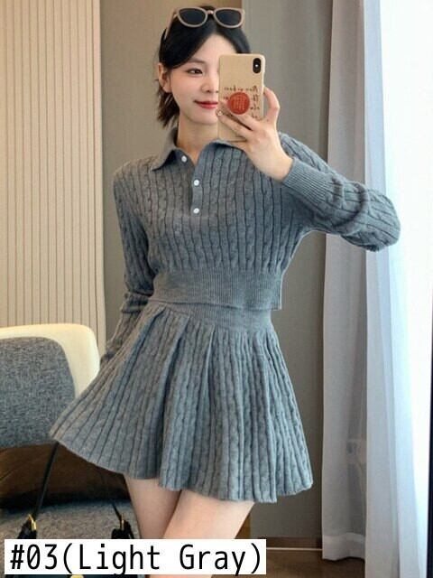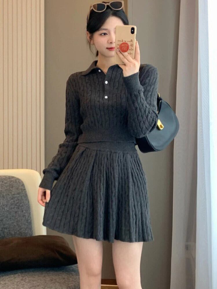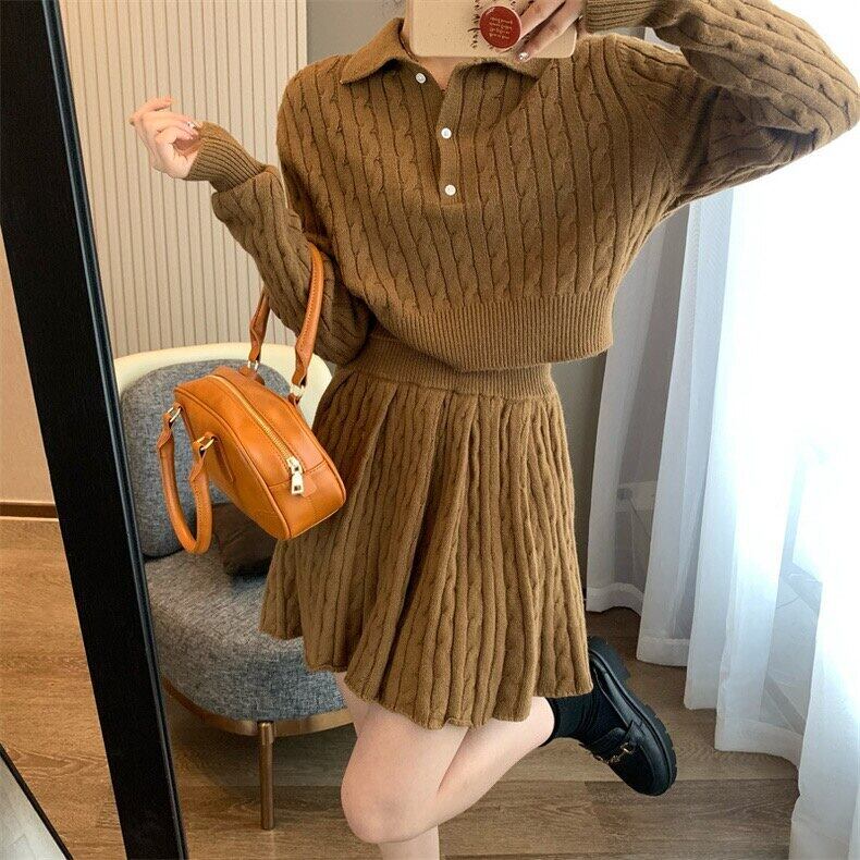 秋冬ニット 2 点セットプルオーバートップス + プリーツスカートセットセーター 2 点セット衣装 オータム 秋物 ウィンター 冬物
