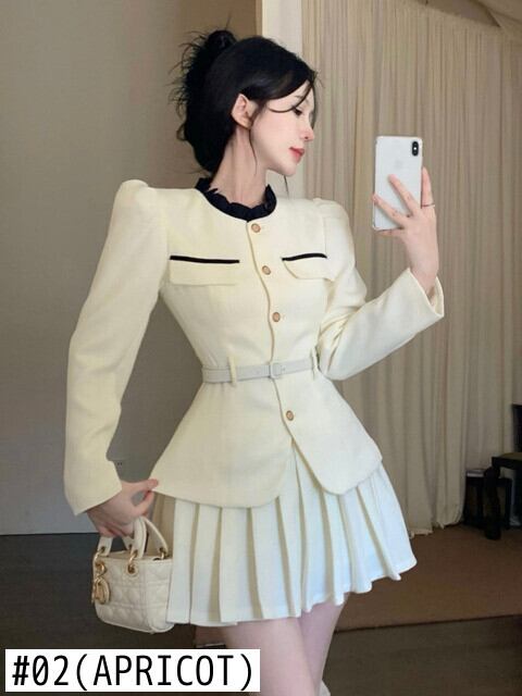 秋冬フレンチスモールフレグランスツーピースセットブレザーコート+プリーツスカートスーツOL 2点セット オータム 秋物 ウィンター 冬物