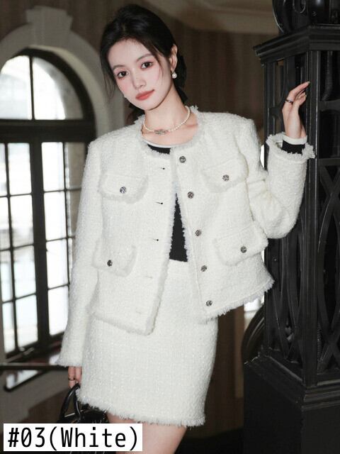 ストリートフレンチスモールフレグランツイード2点セット衣装秋冬ショートジャケットコート+スカート2点セット オータム 秋物 ウィンター 冬物