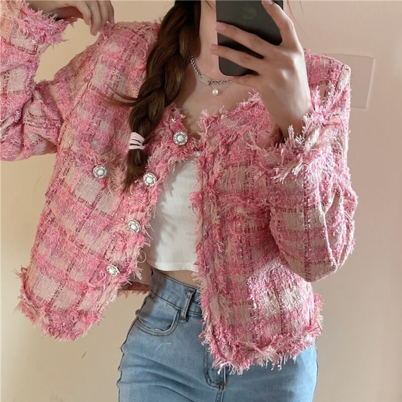秋冬フレンチスイートツイードジャケット高級ウールショートコート生き抜く Casacos Jaqueta Chaqueta 大人ガーリー スウィート キュート カジュアル オータム 秋物 ウィンター 冬物