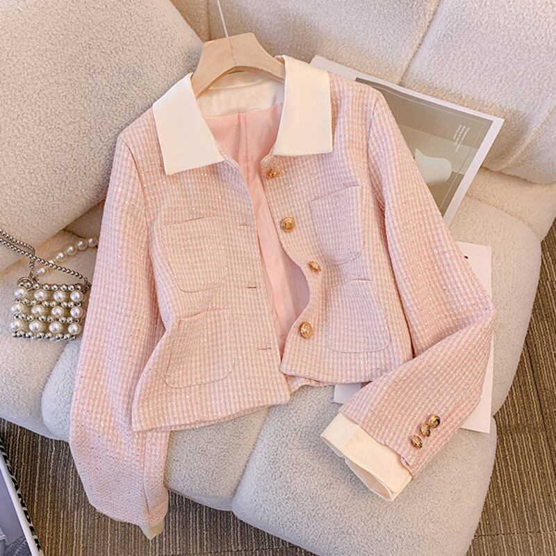 高級スモールフレグランスツイードジャケットエンドスパンコールスリムウールショートコート甘い生き抜くjaqueta 大人ガーリー スウィート キュート カジュアル