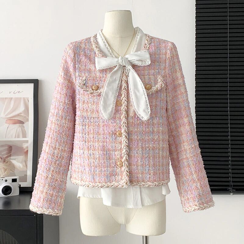 フランス小さ香りツイードジャケット秋冬甘いウールコート Chaquetas Casaco 大人ガーリー スウィート キュート カジュアル オータム 秋物 ウィンター 冬物