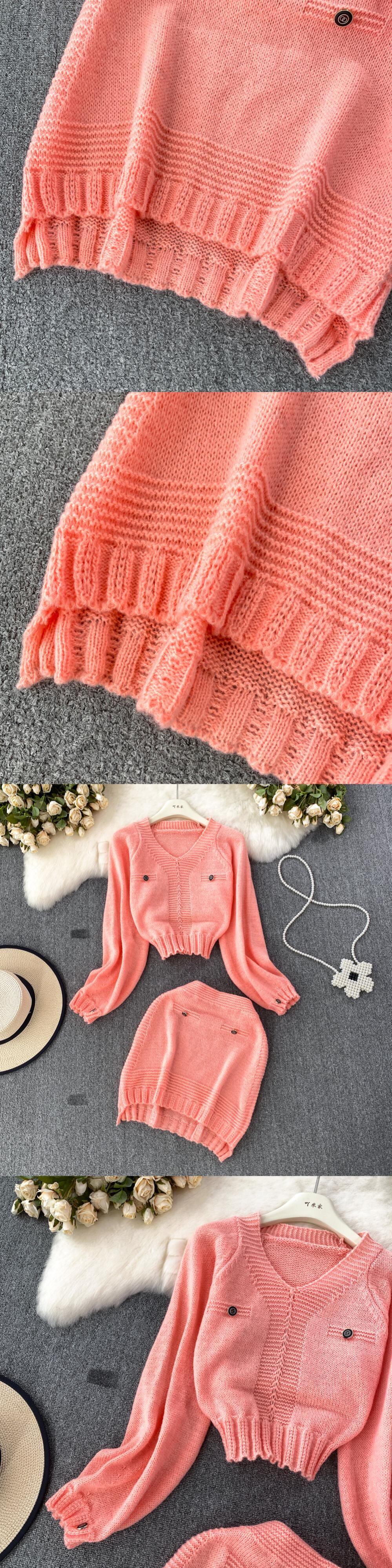 ニット 2 点セット秋冬プルオーバーセータークロップトップ + ミニスカートスーツ女子甘い 2 ピース衣装 大人ガーリー スウィート キュート カジュアル ウィンター 冬物