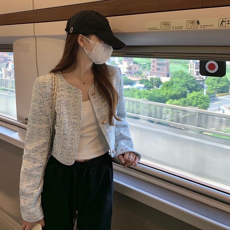 ストリートフレンチ小さ香りツイードジャケット秋冬 Y2K フライドストリートウールコートチェック柄生き抜く ウィンター 冬物