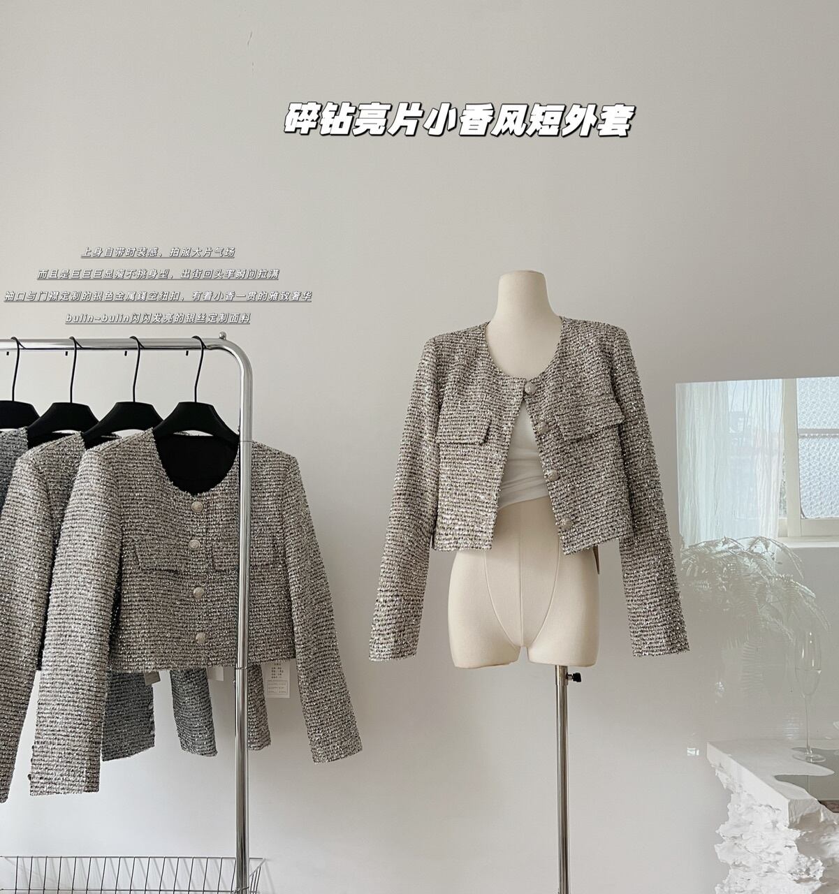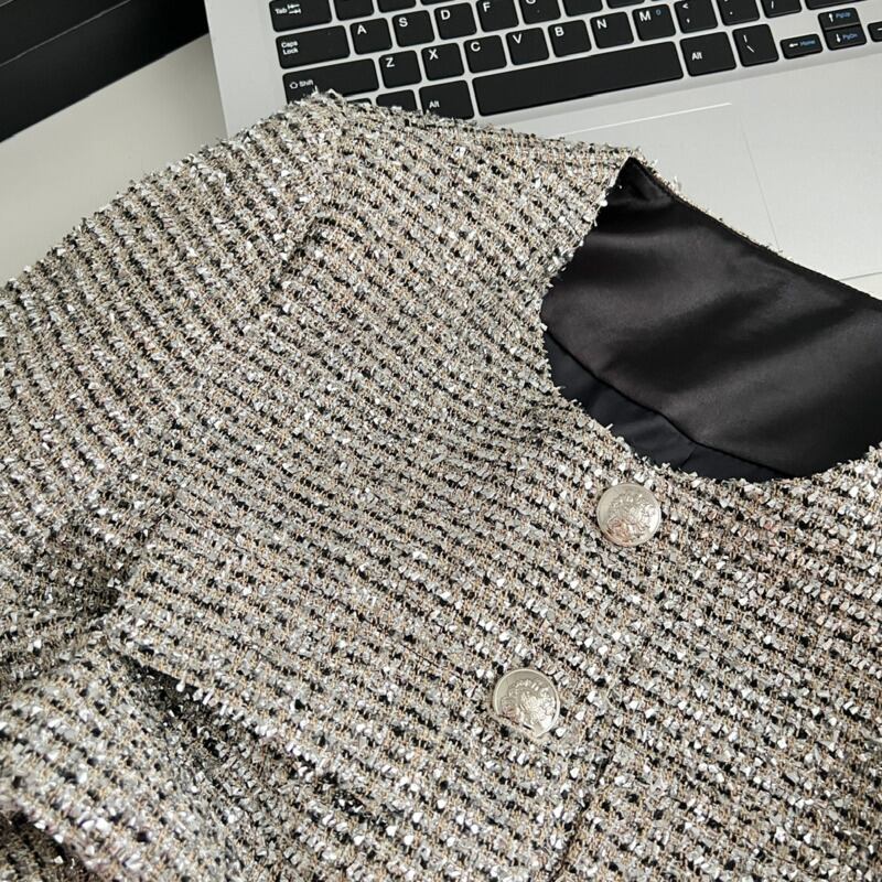 フランス小さフレグランスジャケット秋冬 Y2K ストリート明るい可能ショートコートトップ ウィンター 冬物 シルク