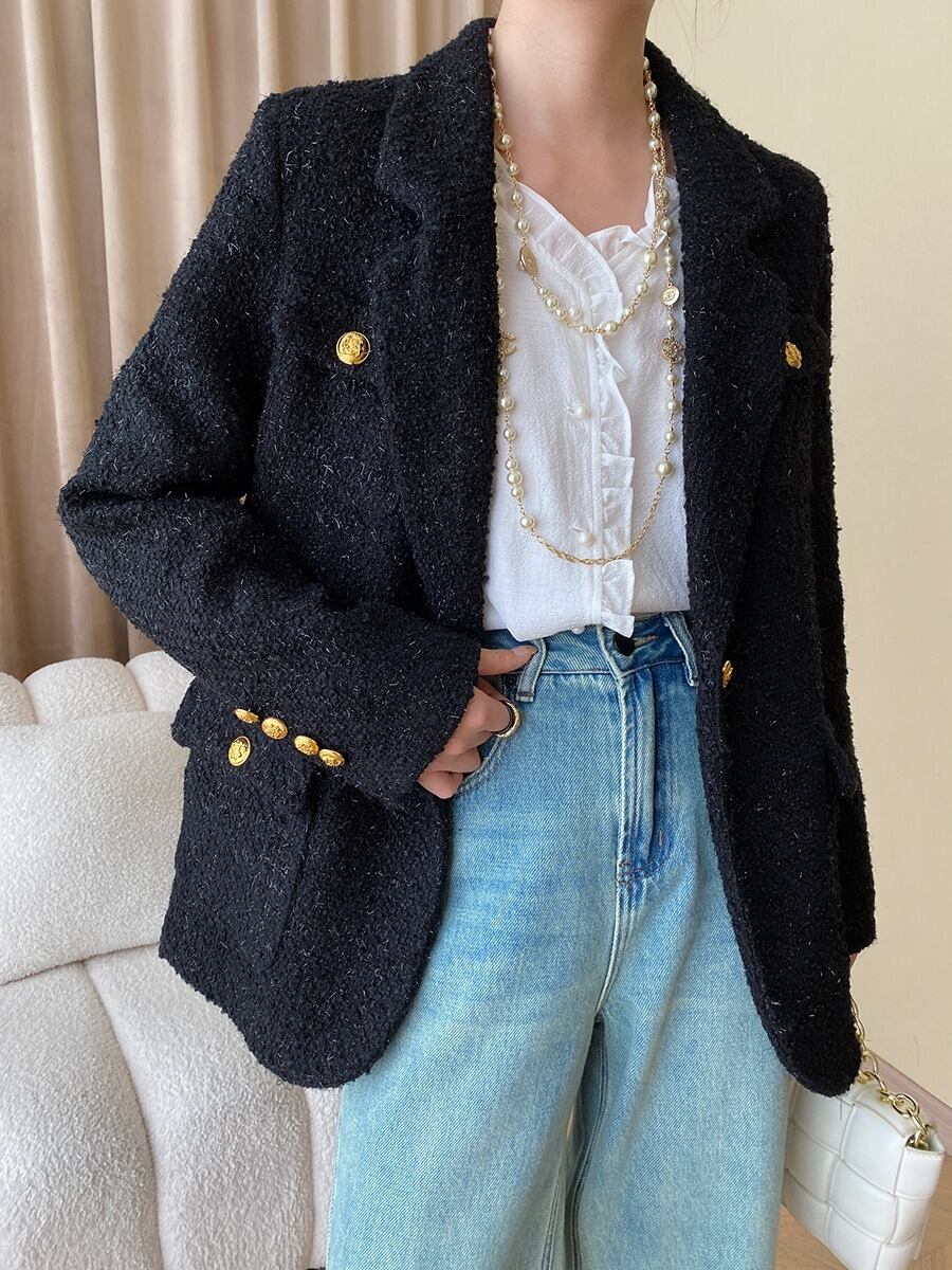 小さ香りウールブレザーコート秋冬スーツ生き抜くツイードジャケット Casaco Feminino ウィンター 冬物