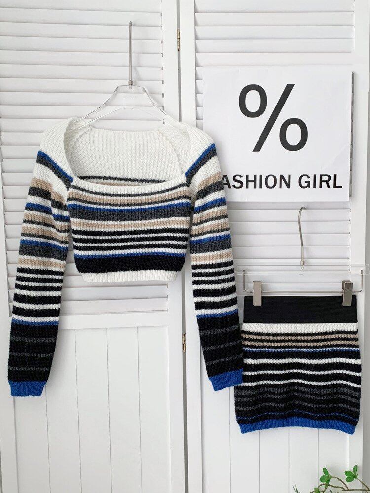 女子甘いニット 2 点セットプルオーバークロップトップ + ボディコンスカートセット小さフレグランスセーター 2 ピーススーツ 大人ガーリー スウィート キュート カジュアル