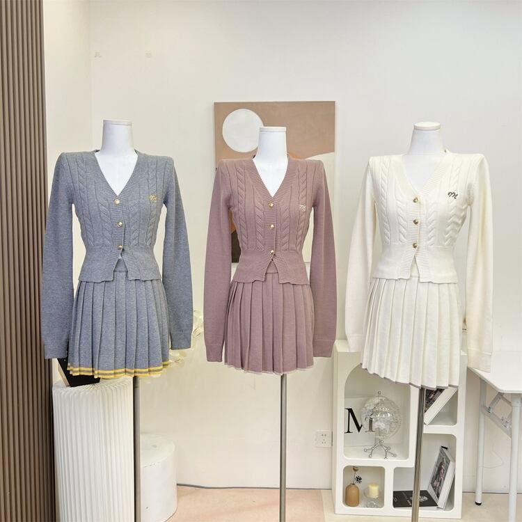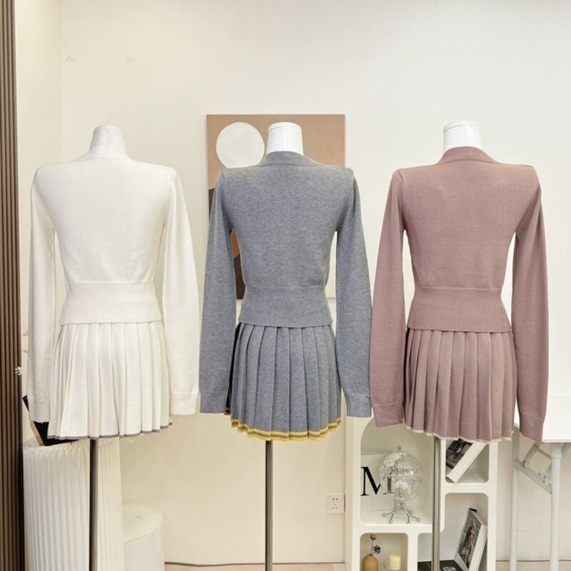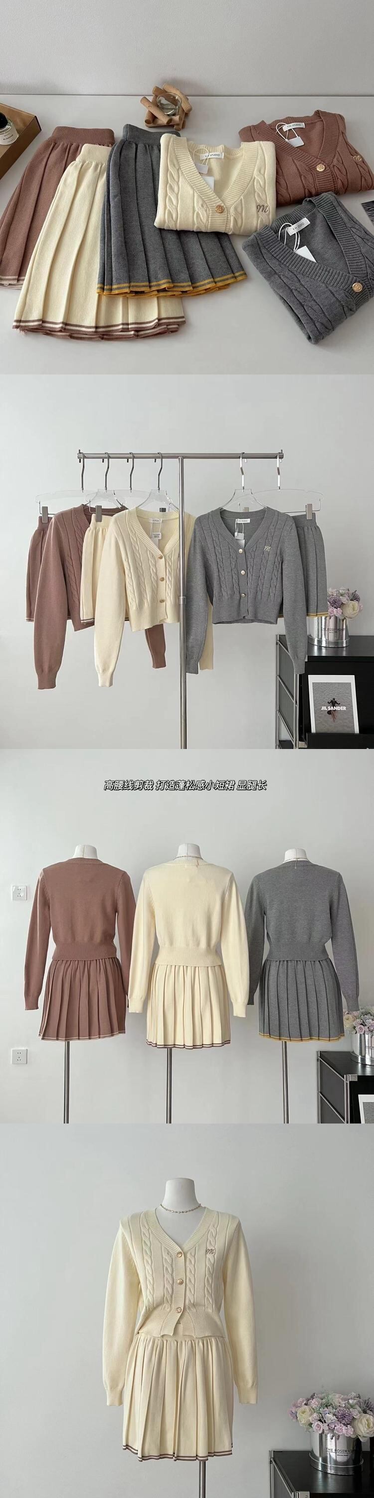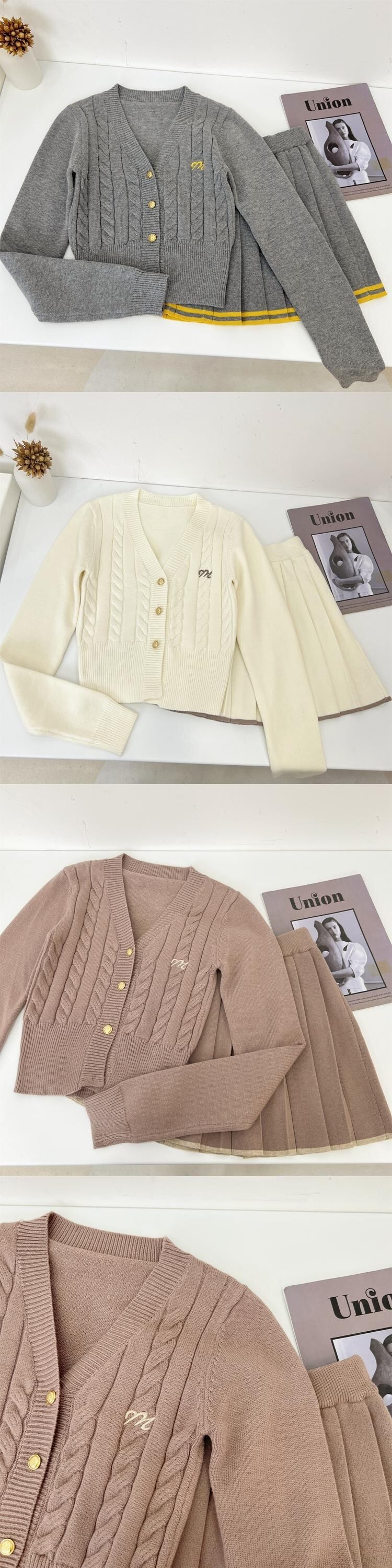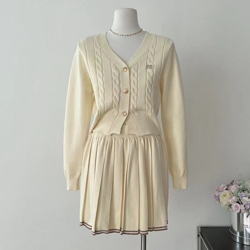 秋冬ガールズ甘いニット 2 点セットカーディガンコート + プリーツスカートセットセーター 2 ピーススーツ 大人ガーリー スウィート キュート カジュアル オータム 秋物 ウィンター 冬物