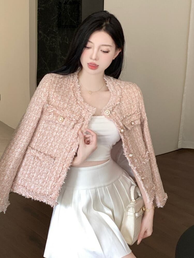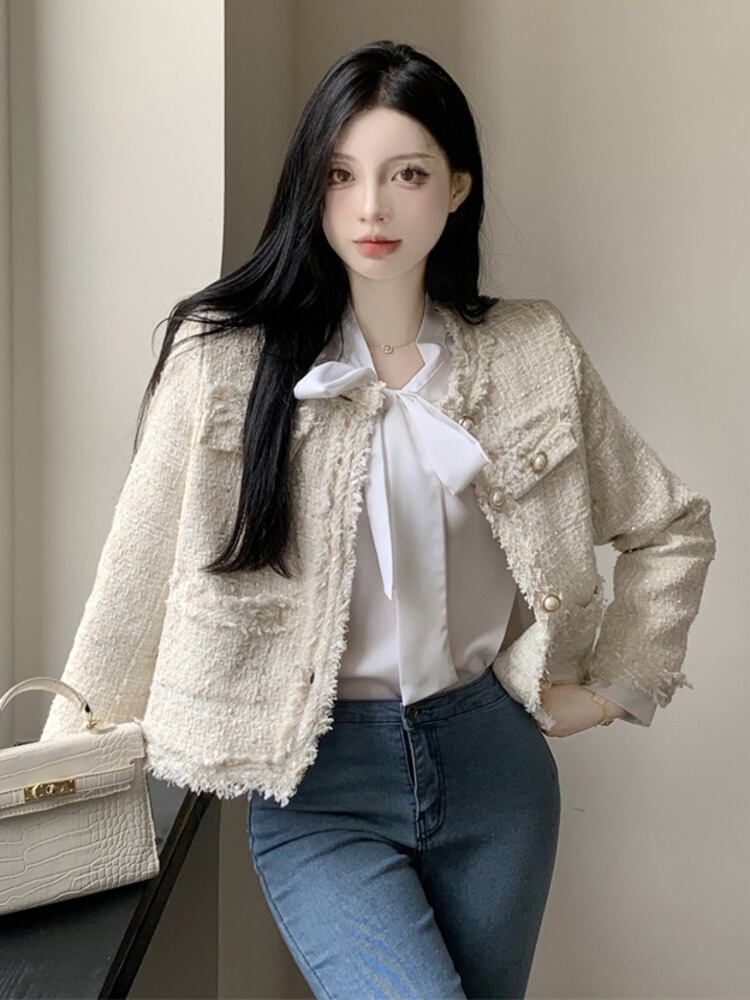 フレンチスモールフレグランスツイードジャケット秋冬フライドストリートショートコート生き抜く ウィンター 冬物