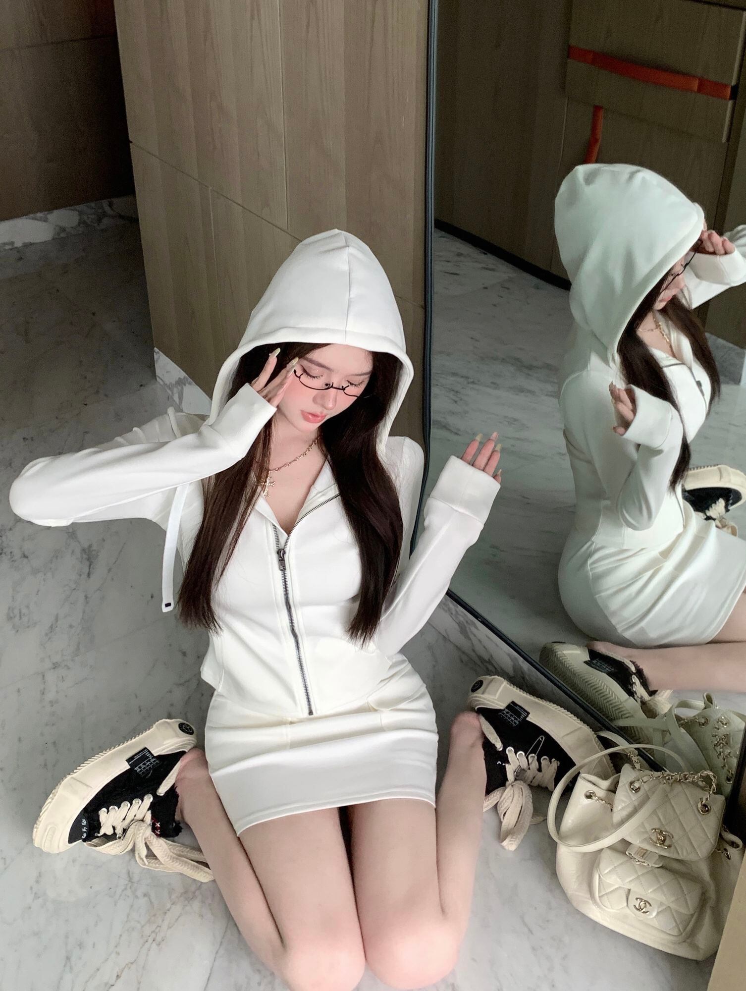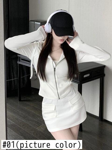 スポーツ 2 点セットフード付きジッパーコート + スカートスーツ秋トラックスーツ 2 点セット Conjuntos Cortos オータム 秋物