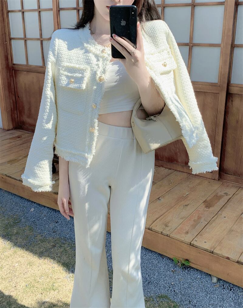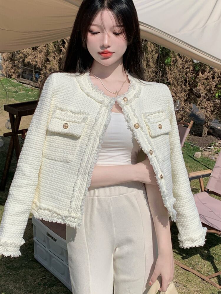 フレンチスモールフレグラントツイードジャケットコートウールアウター Casaco Feminino Jaqueta
