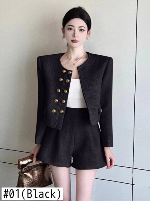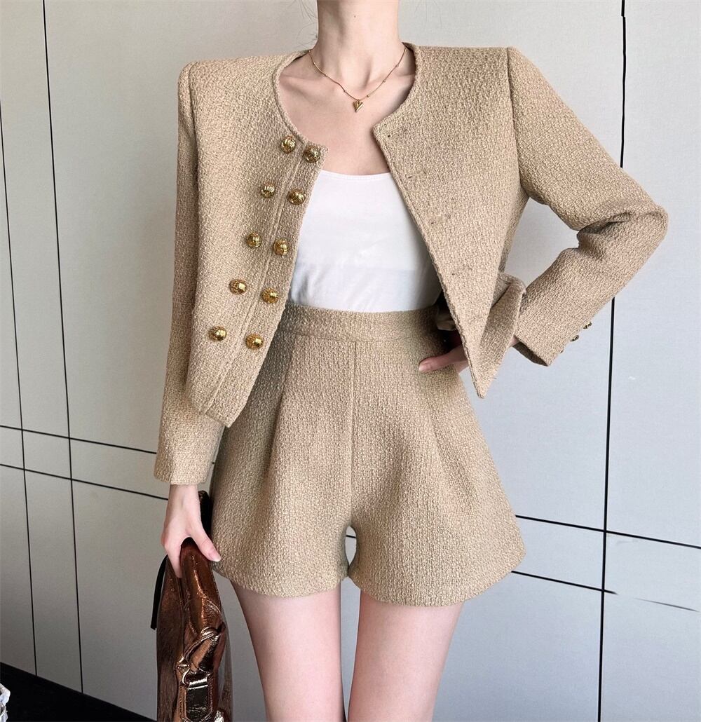 秋冬フレンチスモールフレグランスツイード2ピースパンツセットストリート可能ジャケットコート+ショートツーピースセット オータム 秋物 ウィンター 冬物