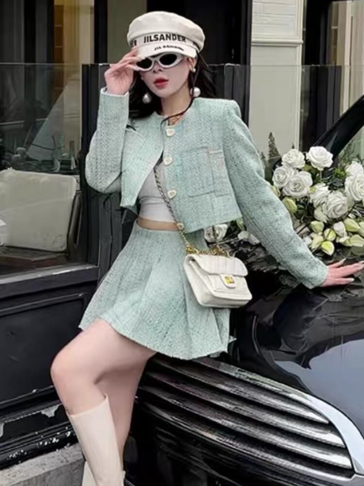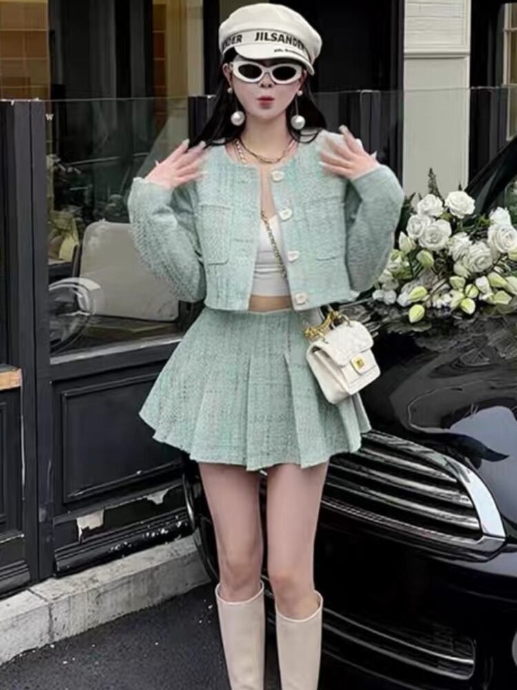 秋ツーピースセットショートジャケットコート + ミニスカート conjuntos cortos para mujeres 2 点セット衣装エレガント オータム 秋物