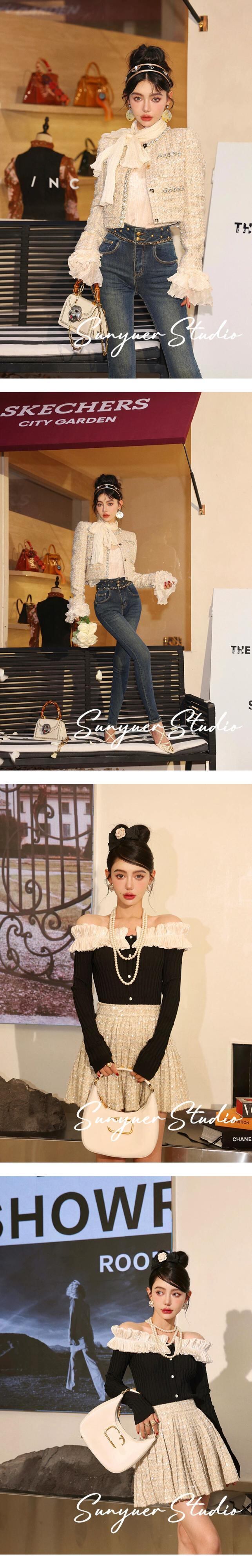ツーピースセット秋冬 conjuntos femininos エレガンテスジャケットコート + スカート 2 ピースショートセット衣装 エレガント オータム 秋物 ウィンター 冬物