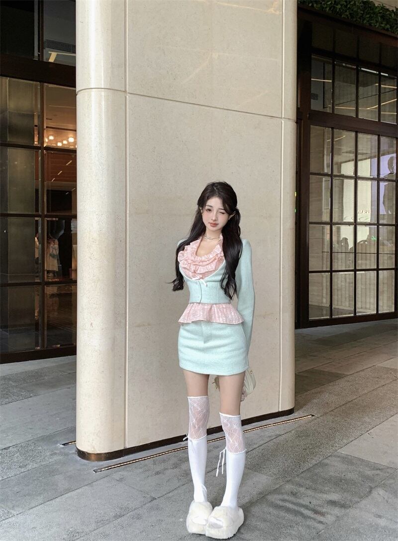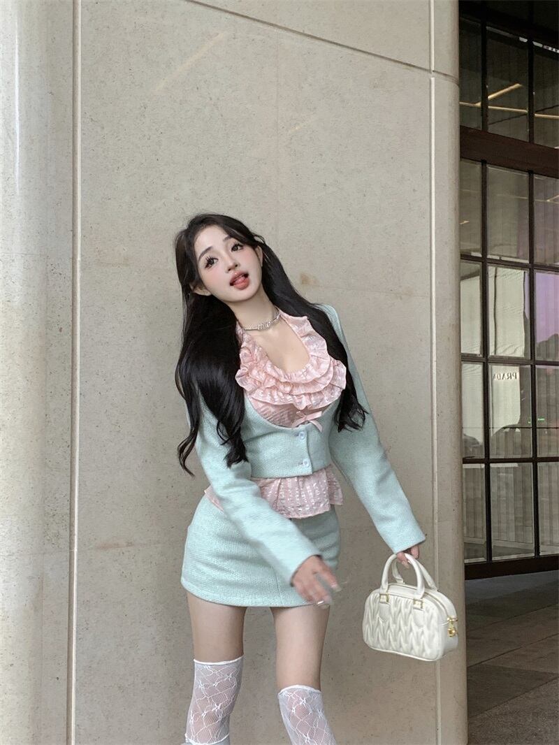 甘い小さ香り 2 点セット衣装秋フレンチショートジャケットコート + ボディコンスカートツーピーススーツ 大人ガーリー スウィート キュート カジュアル オータム 秋物