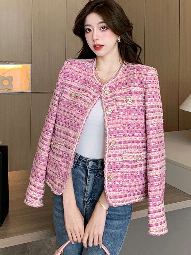 高級滑走路ダイヤモンドボタン小さフレグランスツイードジャケット秋冬フレンチウールコート生き抜く ウィンター 冬物