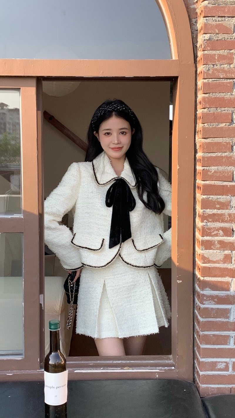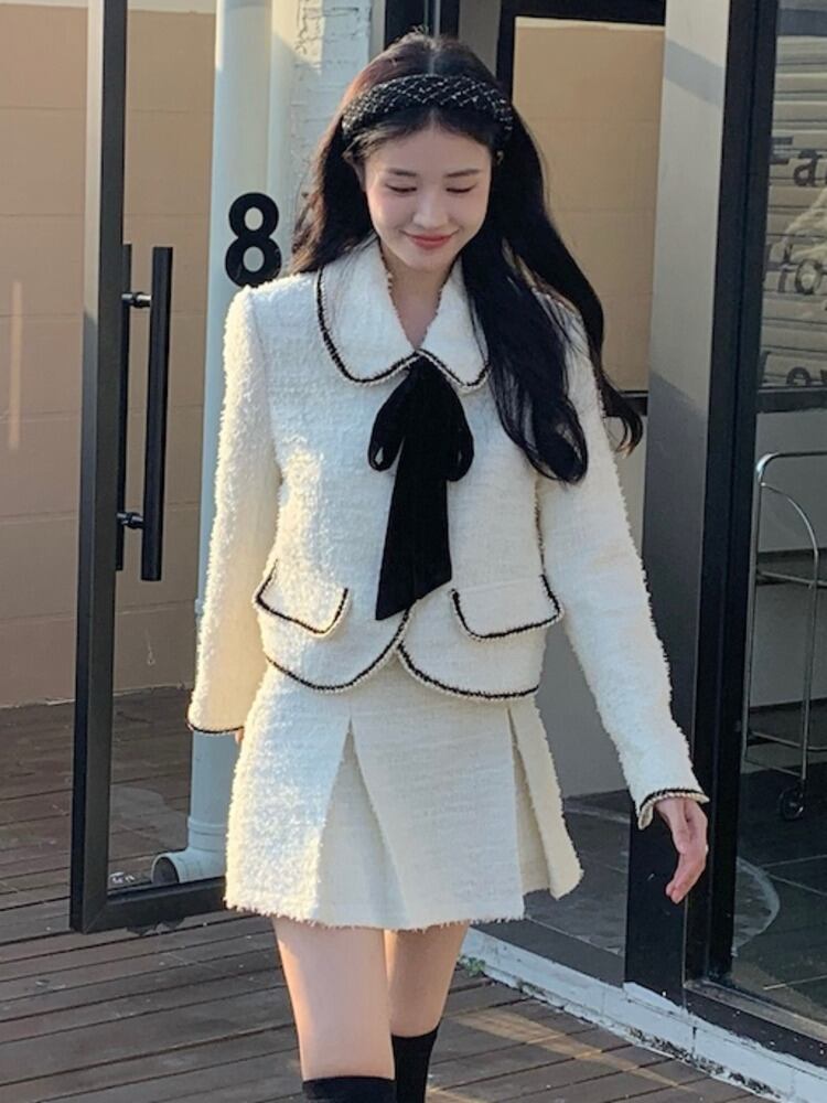 甘い小さ香りツイード 2 点セットジャケット コート + プリーツ スカート スーツ秋冬 2 点セット 大人ガーリー スウィート キュート カジュアル オータム 秋物 ウィンター 冬物
