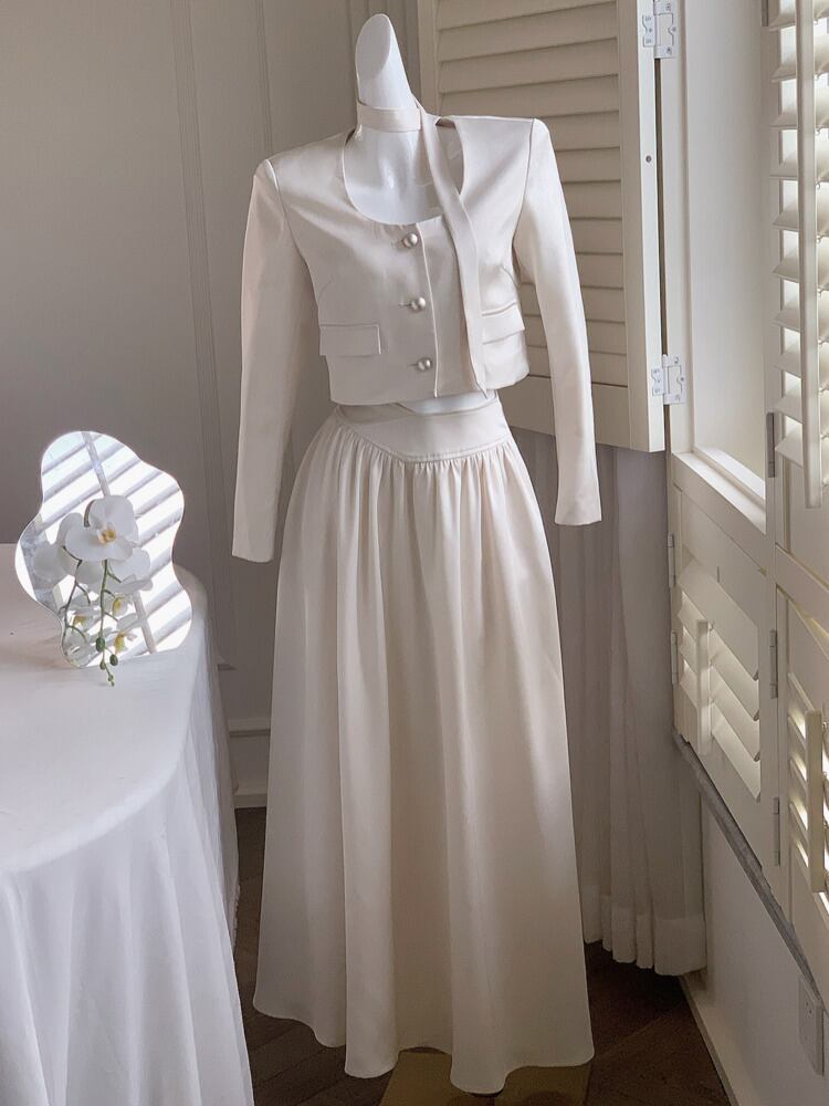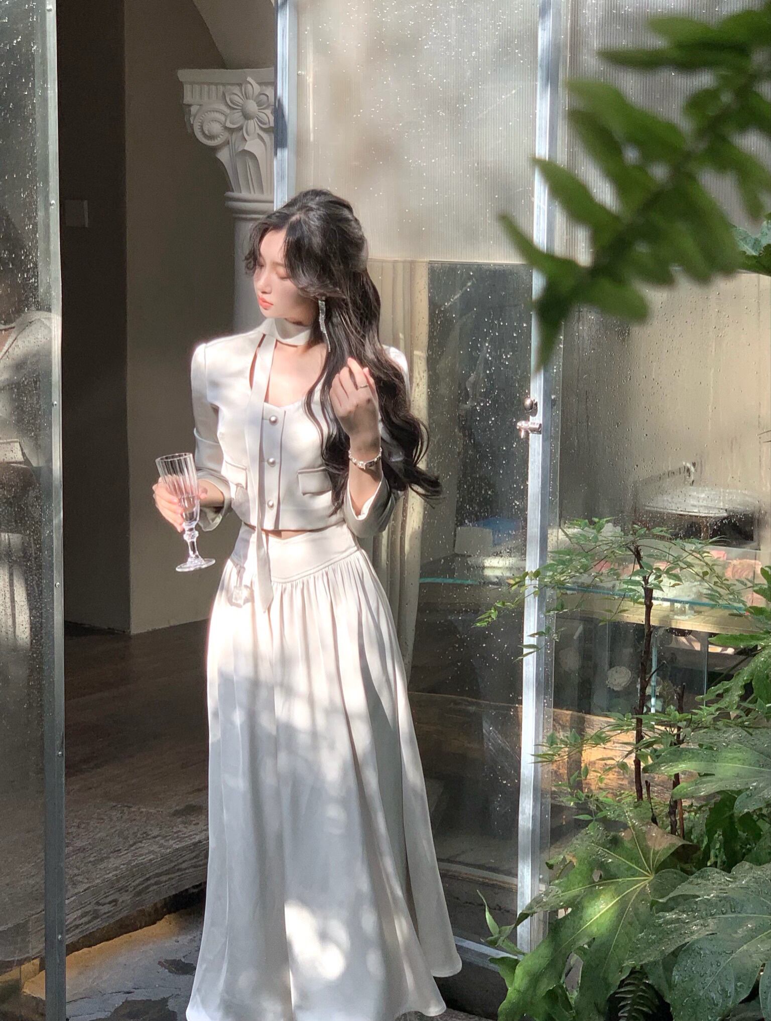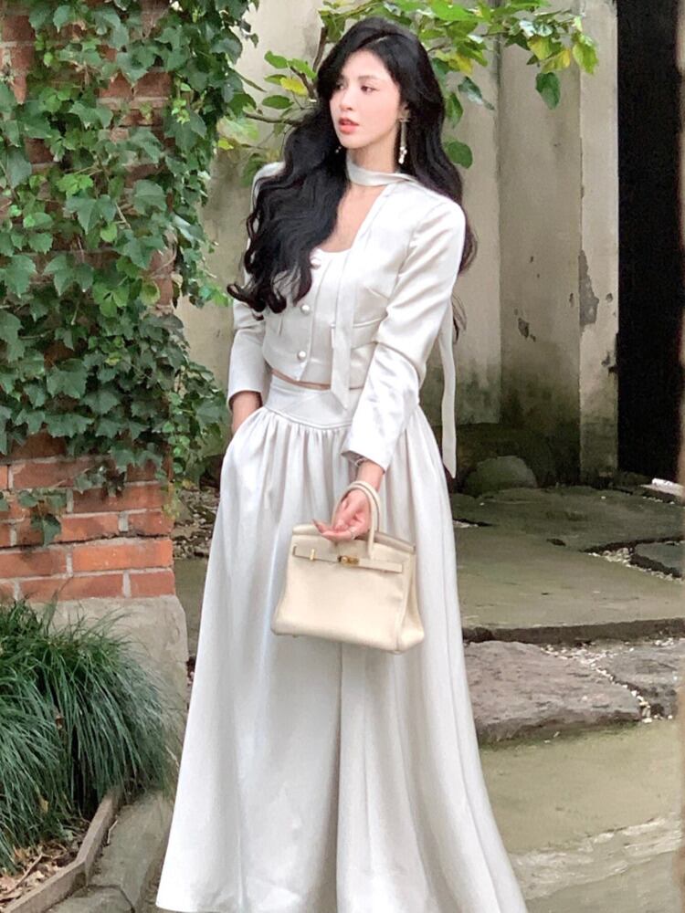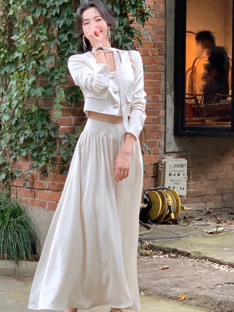 OL ツーピースセットクロップトップ + ロングスカートスーツ秋高級 2 ピース衣装 Conjuntos Curtos オータム 秋物