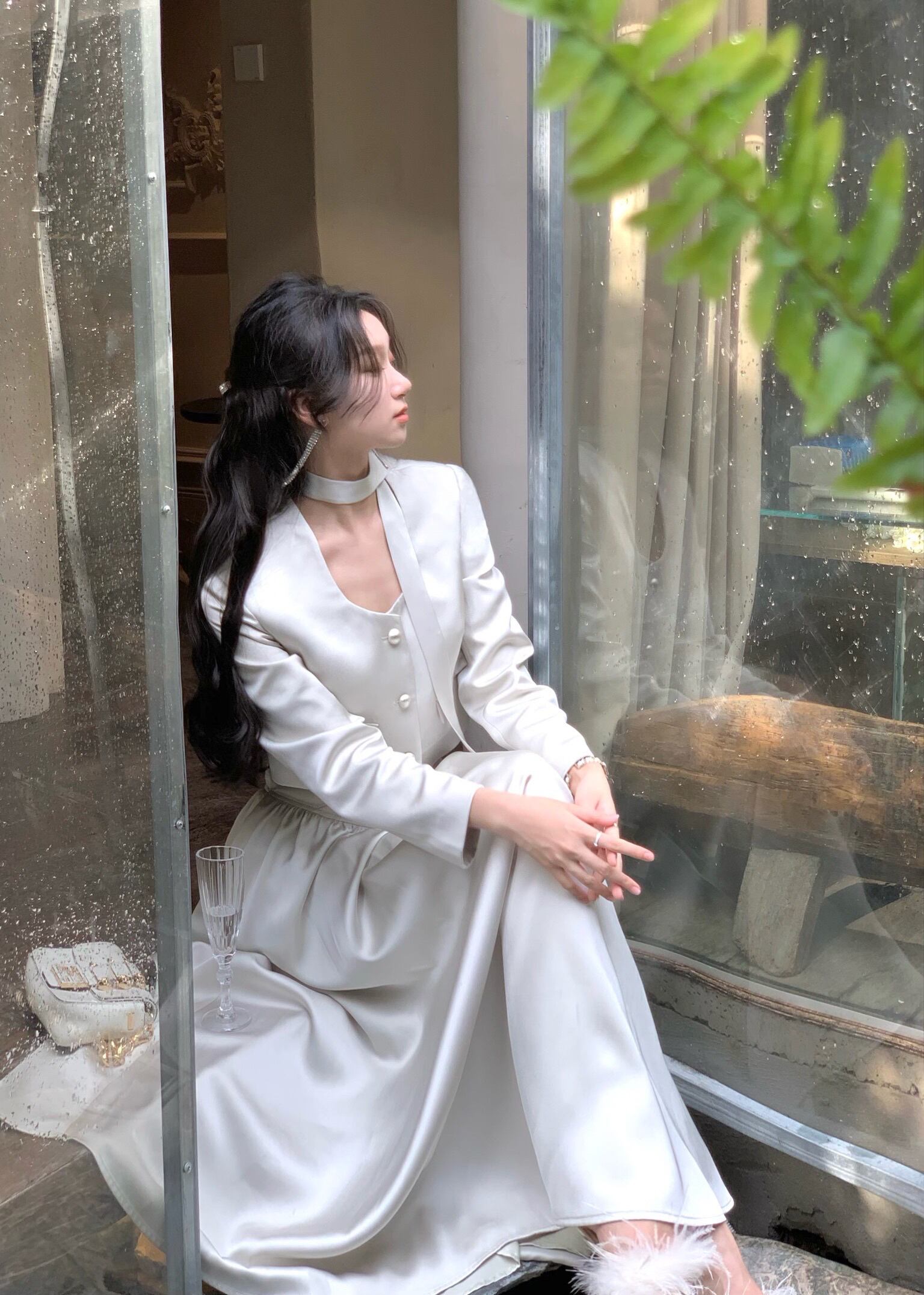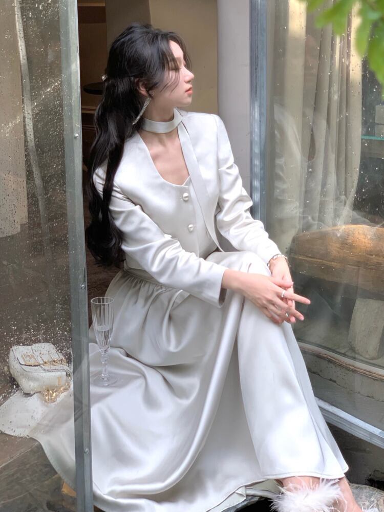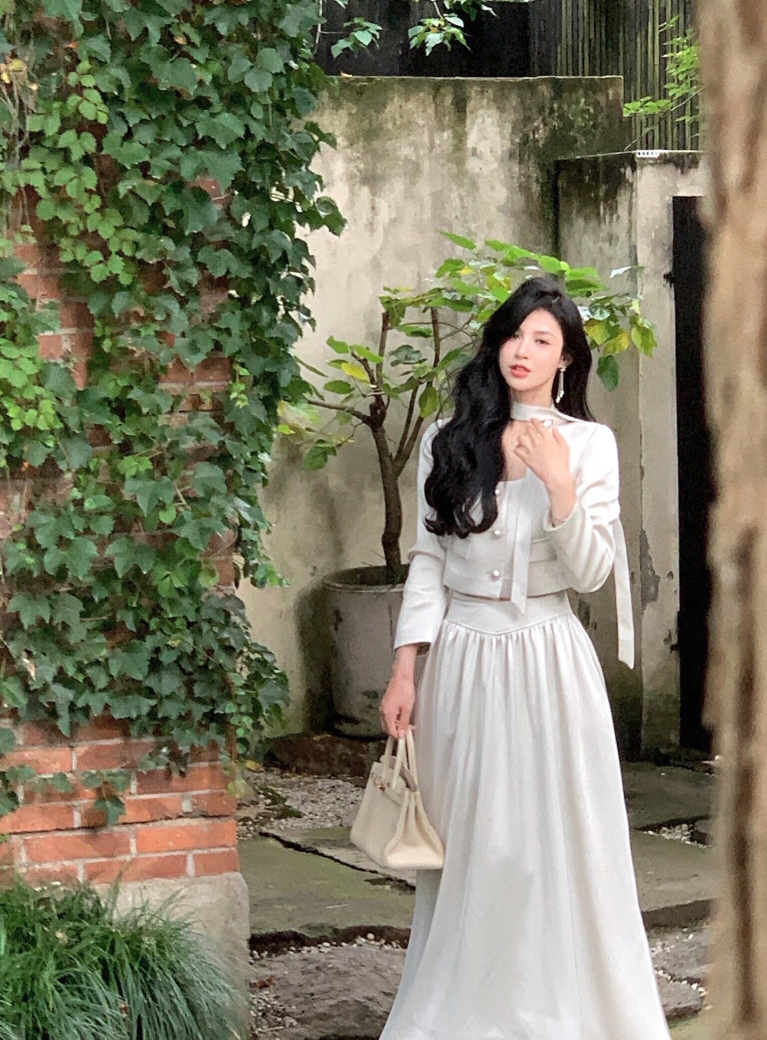 OL ツーピースセットクロップトップ + ロングスカートスーツ秋高級 2 ピース衣装 Conjuntos Curtos オータム 秋物
