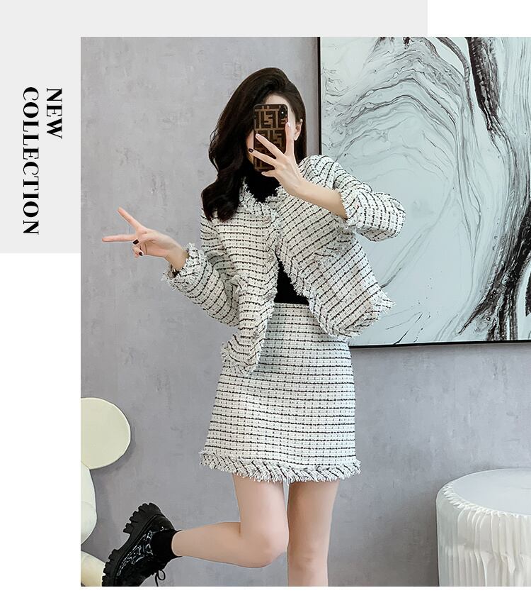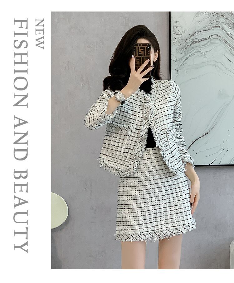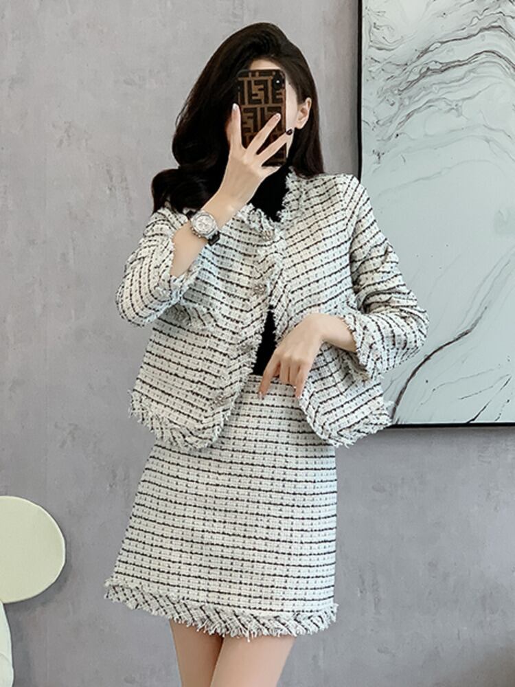 フレンチツイード 2 点セットショートジャケットコート + スカートスーツ秋冬小さ香り 2 点セット オータム 秋物 ウィンター 冬物