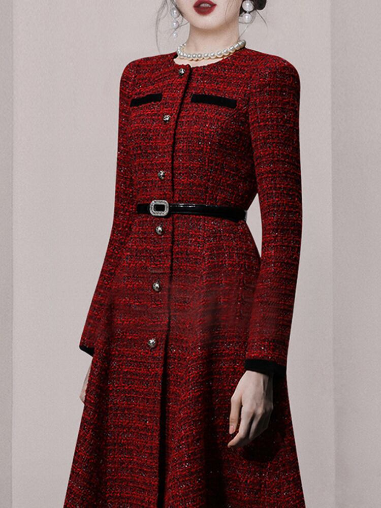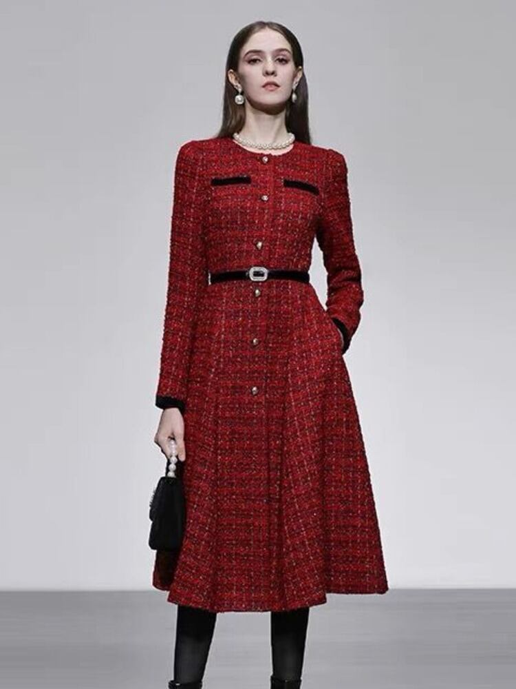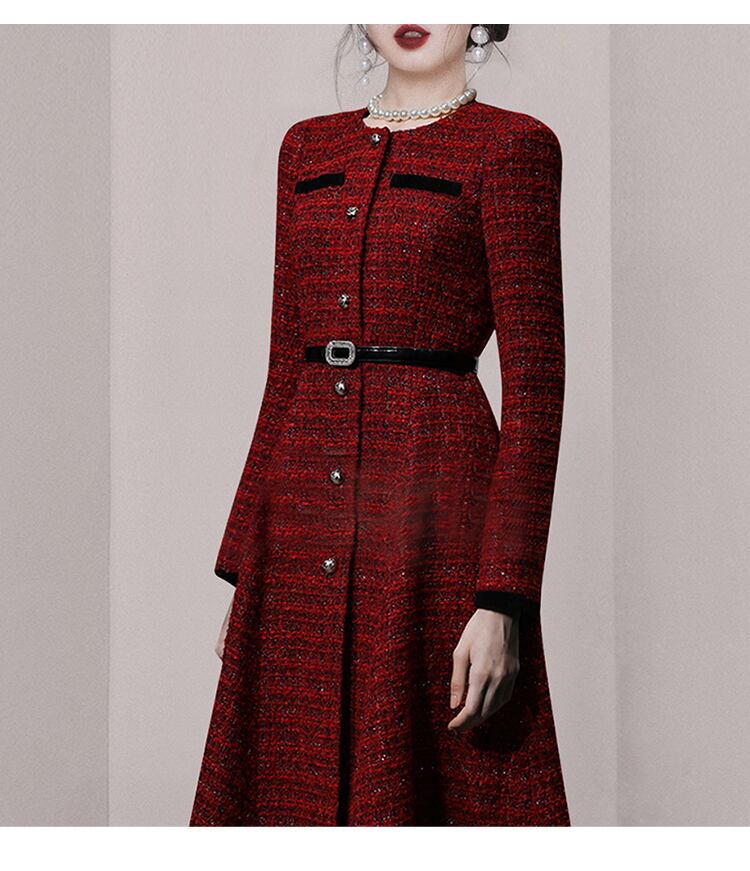 フランス小さ香りツイードドレス秋冬スリムパーティーロングドレス Vestido ウィンター 冬物