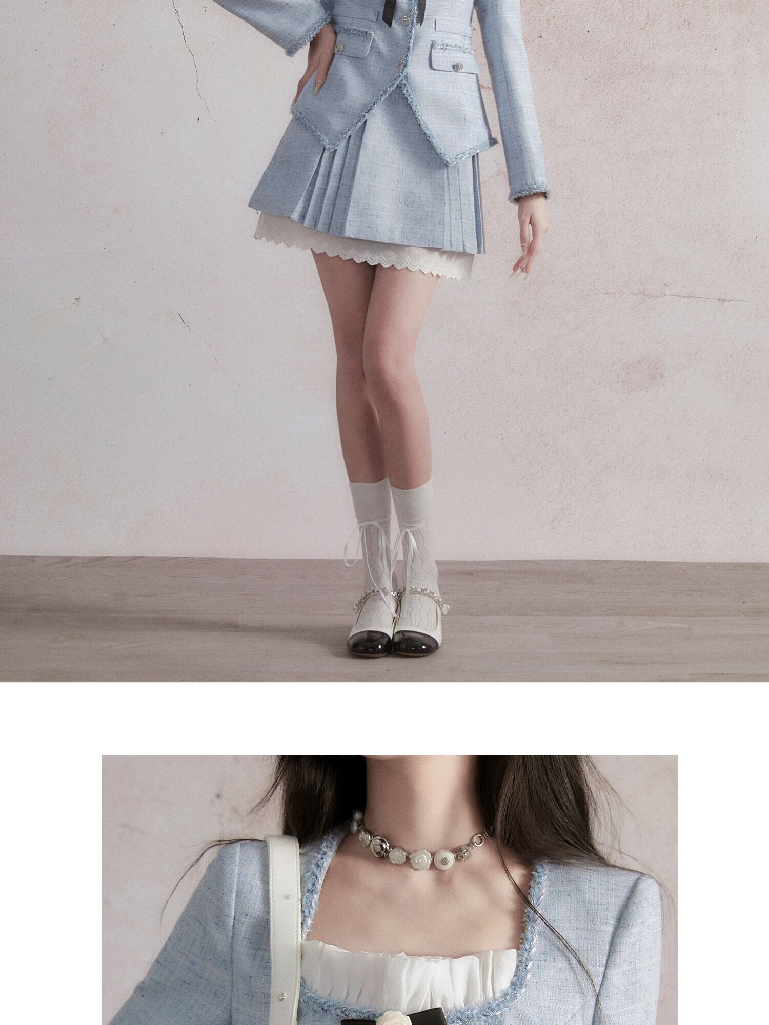 女子甘いかわいい小さ香りツーピースセットジャケットコート + プリーツスカートセット秋冬 2 ピース衣装 大人ガーリー スウィート キュート カジュアル ウィンター 冬物