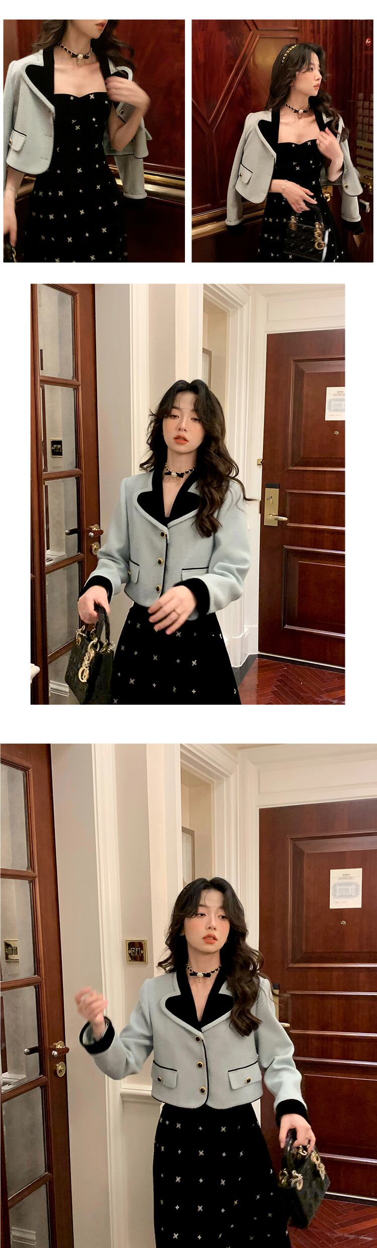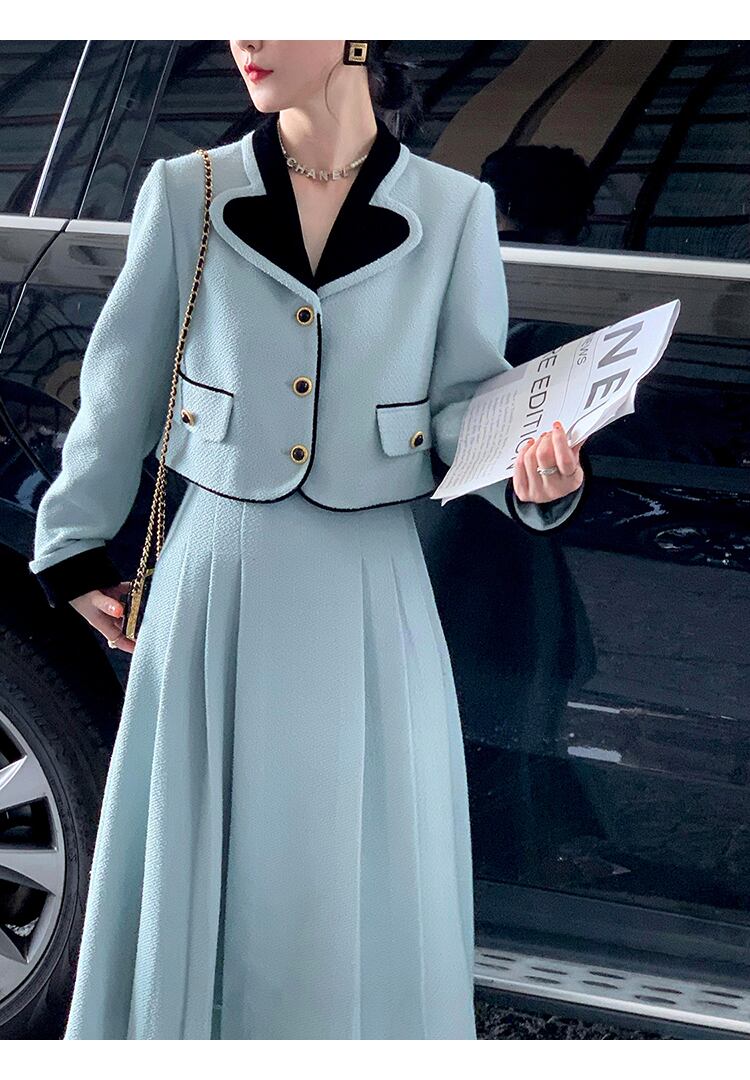 秋冬小さ香りツーピースセットショートジャケットコートロングスカートスーツ 2 点セット衣装 オータム 秋物 ウィンター 冬物