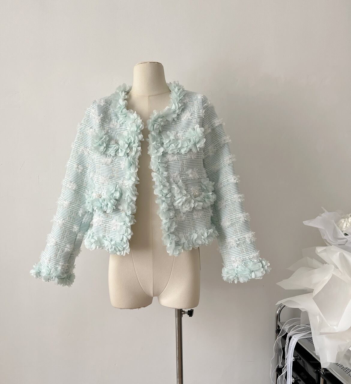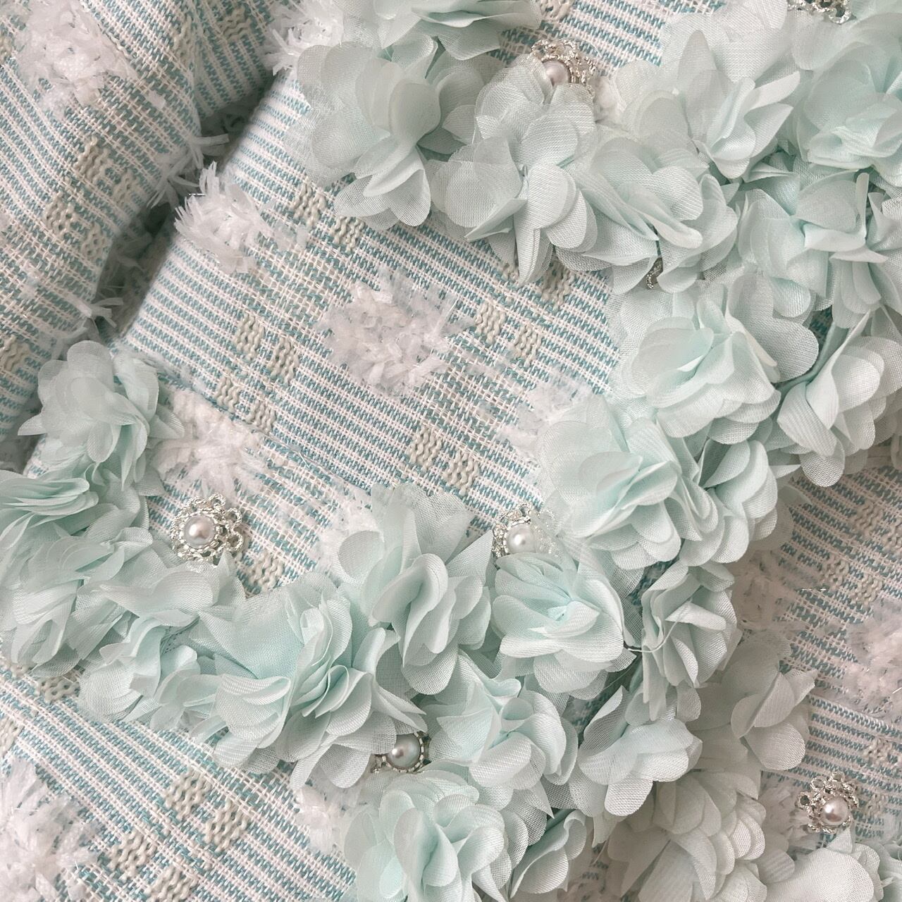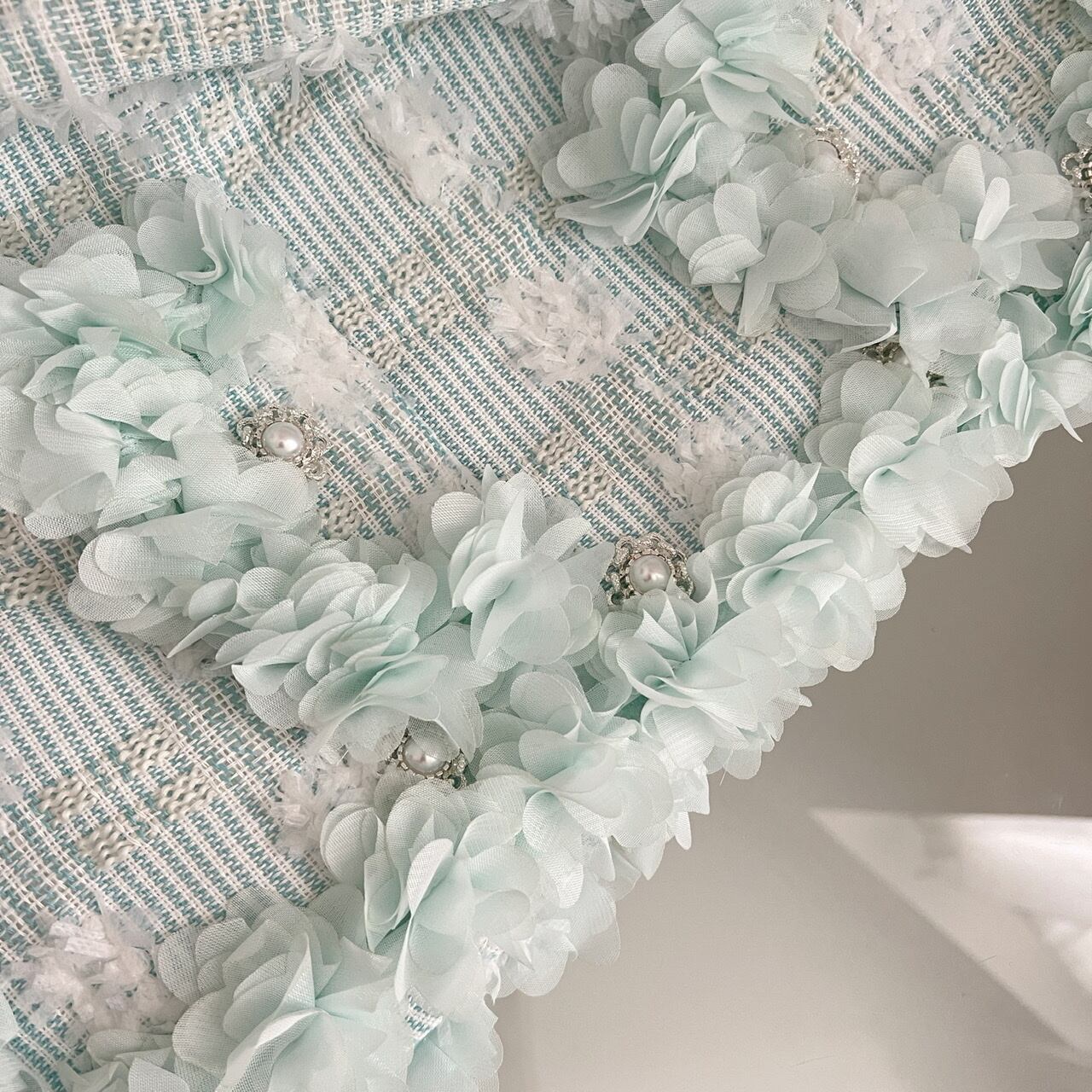 高級 3D フラワーエッジシングルブレストウールコート秋冬小さ香りツイードジャケット オータム 秋物 ウィンター 冬物 フラワーデザイン