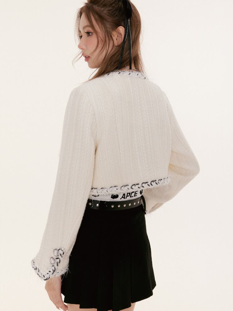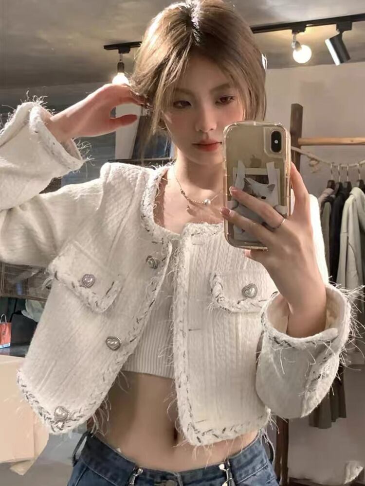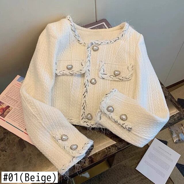 女子甘い小さ香りツイードジャケット秋冬ウールショートコートフレンチ生き抜く 大人ガーリー スウィート キュート カジュアル オータム 秋物 ウィンター 冬物