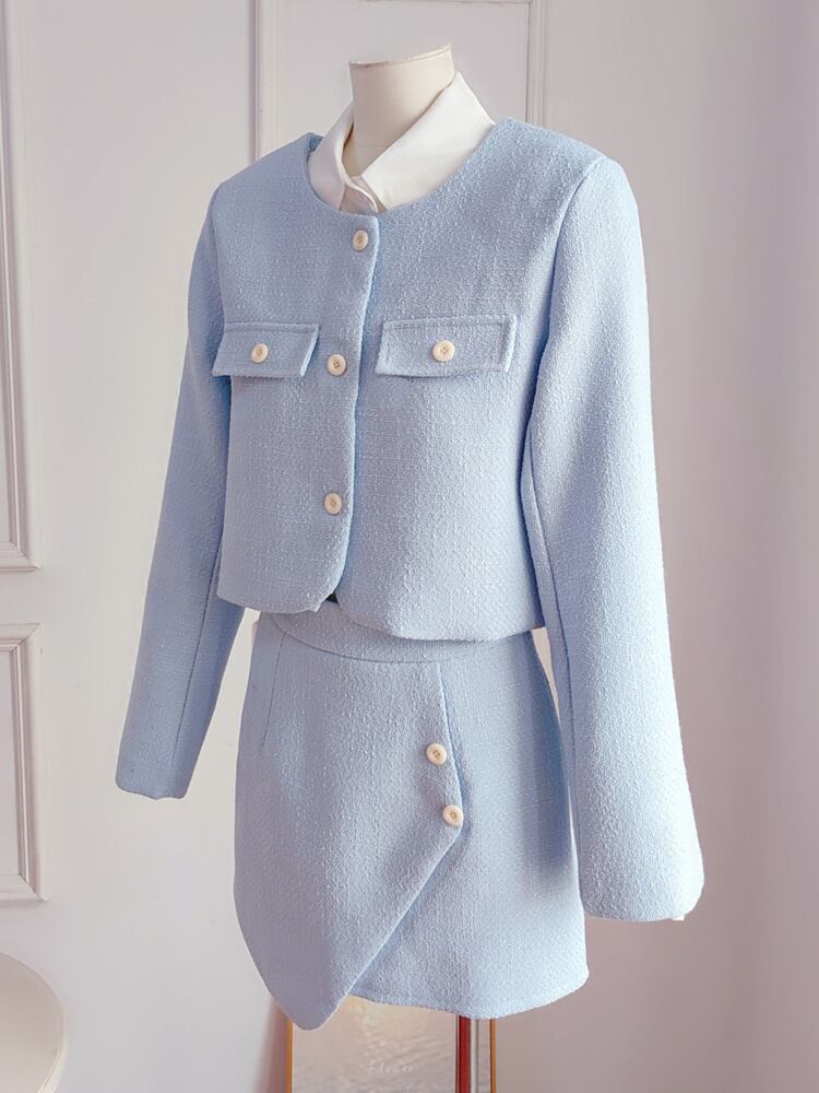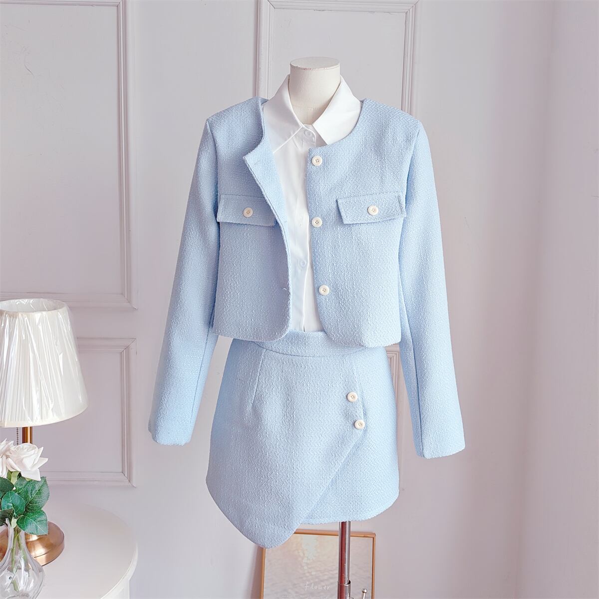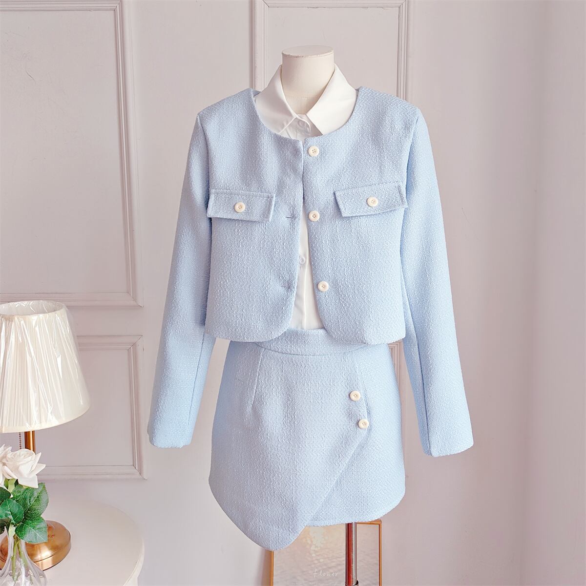 秋冬フレンチスモールフレグランスツーピースセットショートジャケットコート+スカートスーツ甘い2ピース衣装 大人ガーリー スウィート キュート カジュアル オータム 秋物 ウィンター 冬物