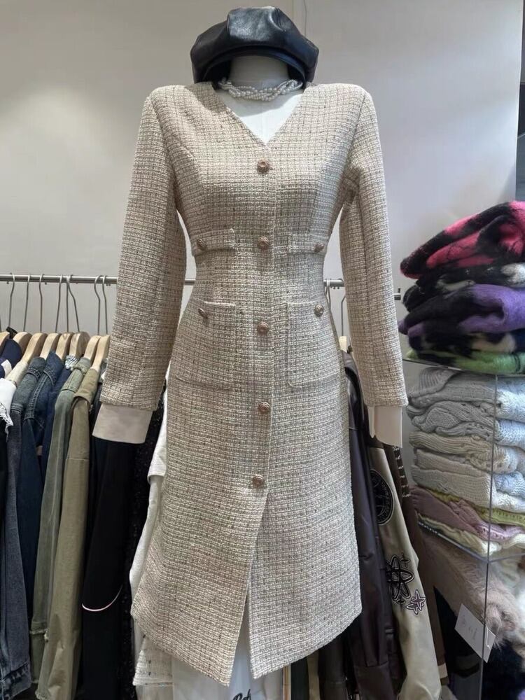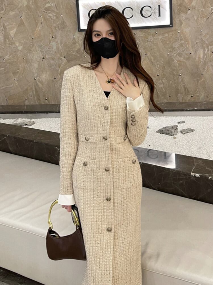 フランス小さ香りツイードドレス秋冬パーティーロングドレス Vestidos オータム 秋物 ウィンター 冬物