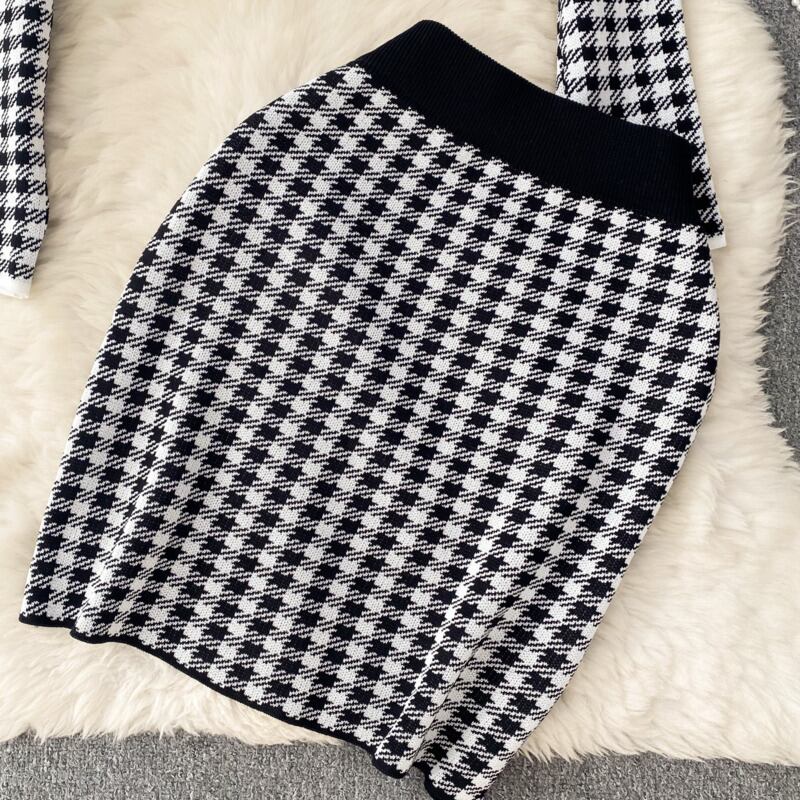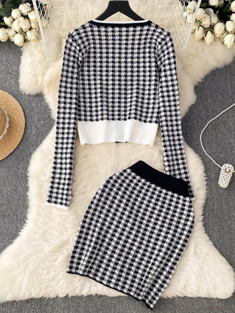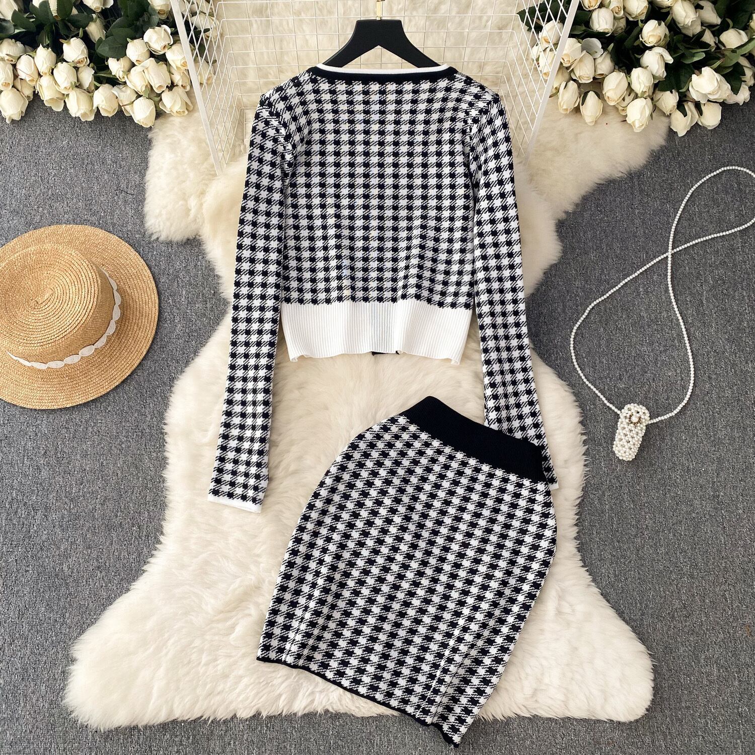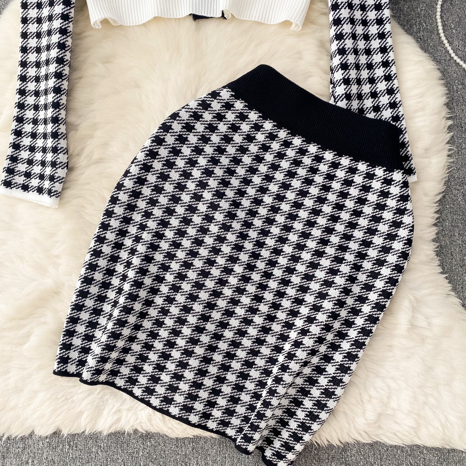 秋服装ツーピースセットニットカーディガントップスプリーツショートセット conjuntos cortos エレガンテスセーター エレガント オータム 秋物