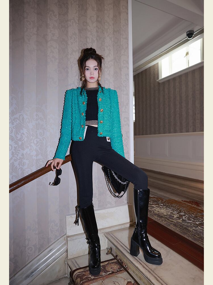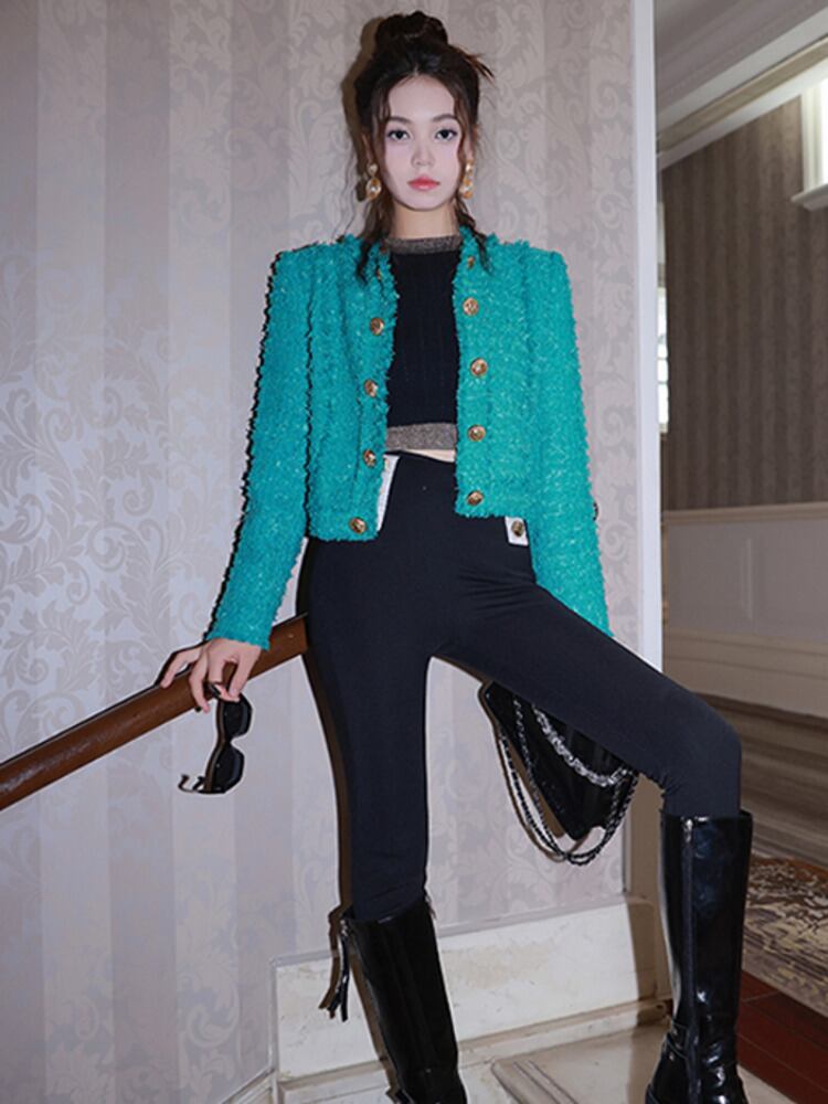 秋冬フレンチスモールフレグランスツイードジャケットストリートウールコートアウター オータム 秋物 ウィンター 冬物