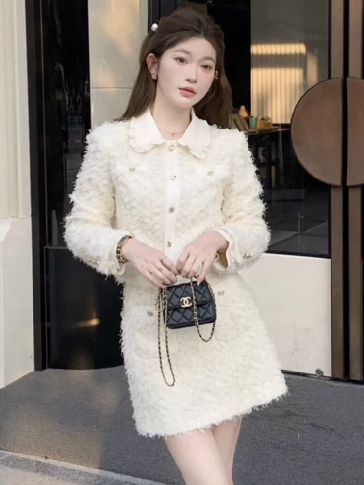 気質小さ香りツーピースセットコート + ドレススーツ秋冬 2 ピース衣装 オータム 秋物 ウィンター 冬物