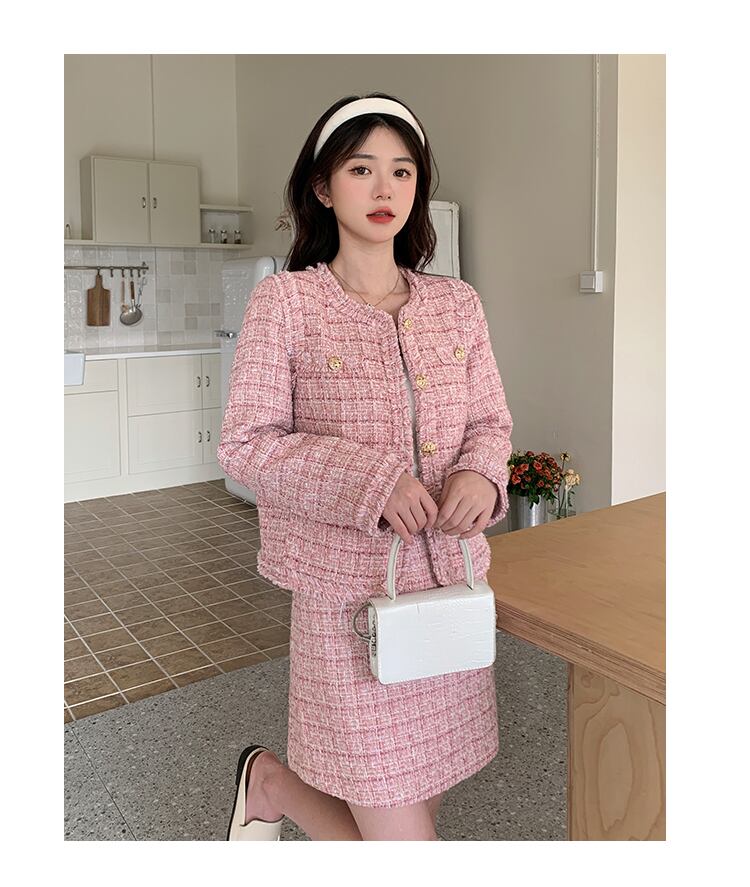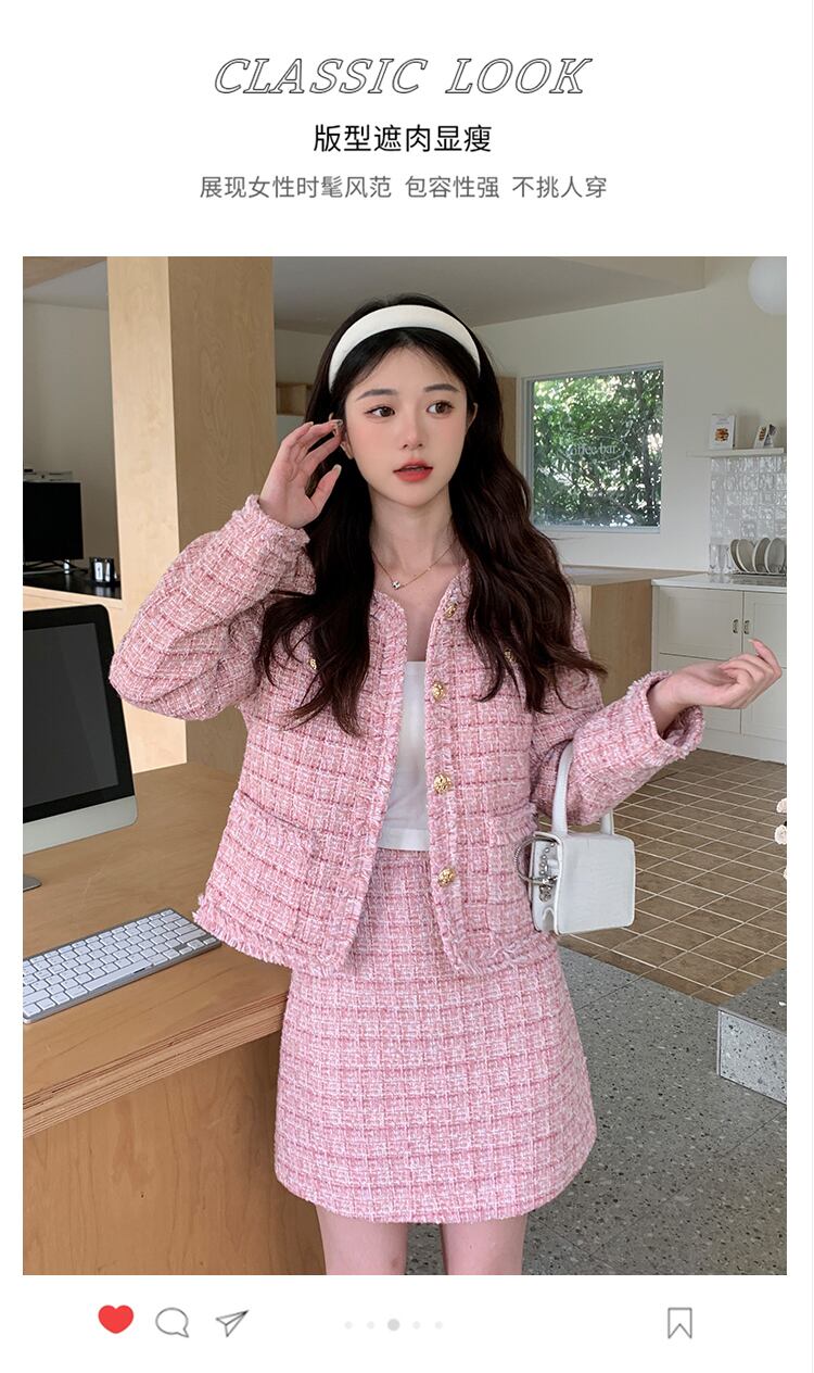気質-endフレンチスモールフレグランスツイードツーピースセット秋冬ピンク甘い2ピーススーツ 大人ガーリー スウィート キュート カジュアル オータム 秋物 ウィンター 冬物