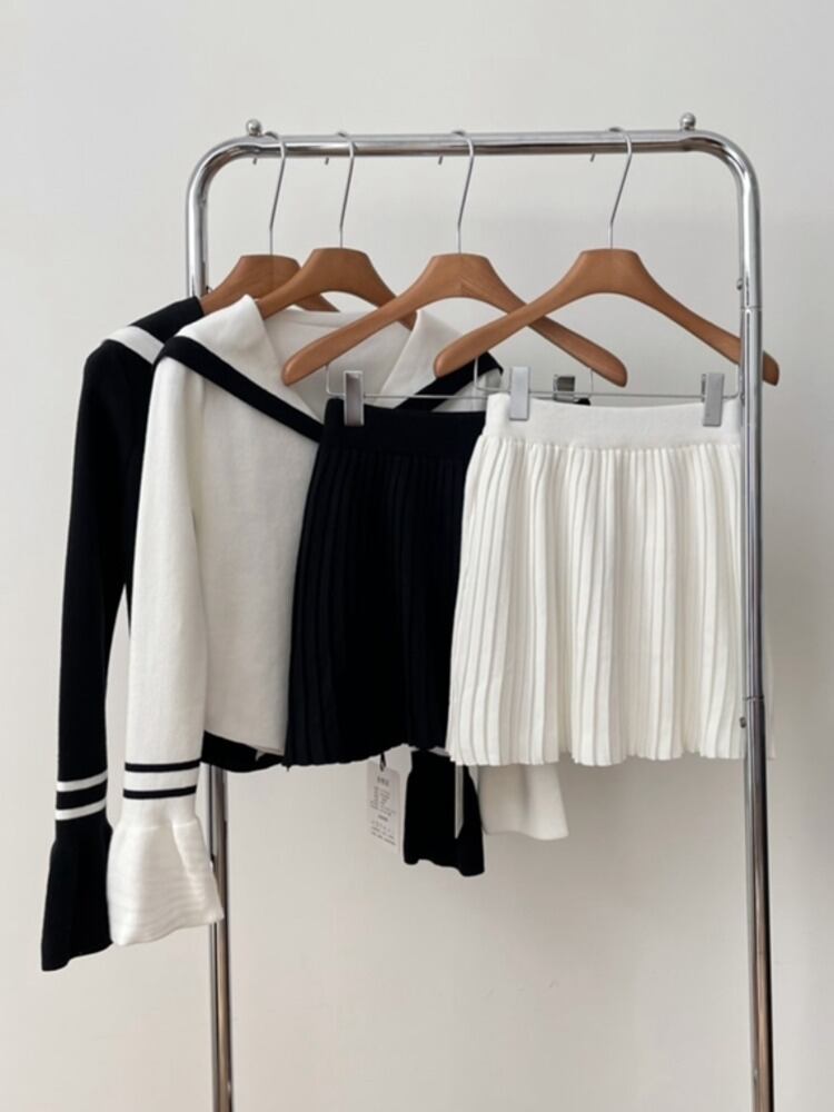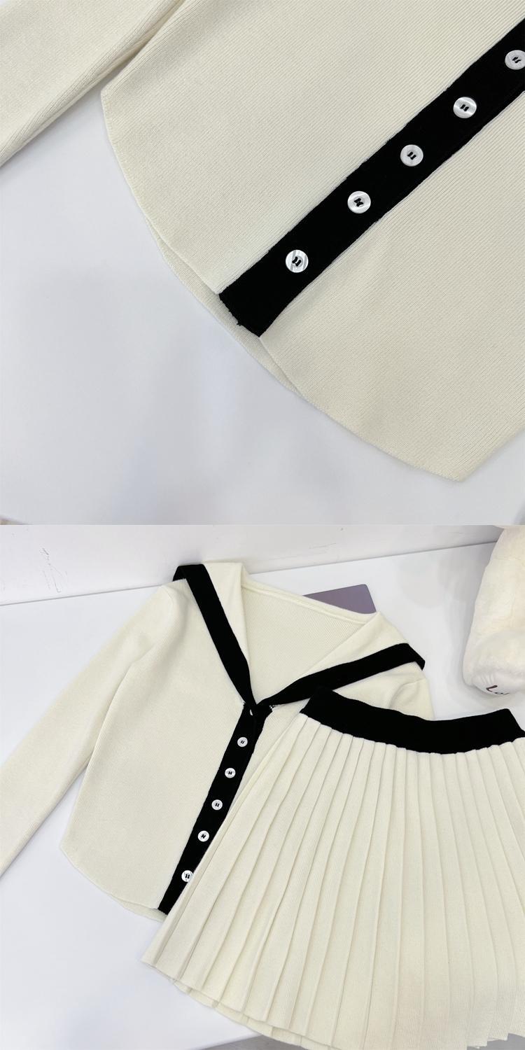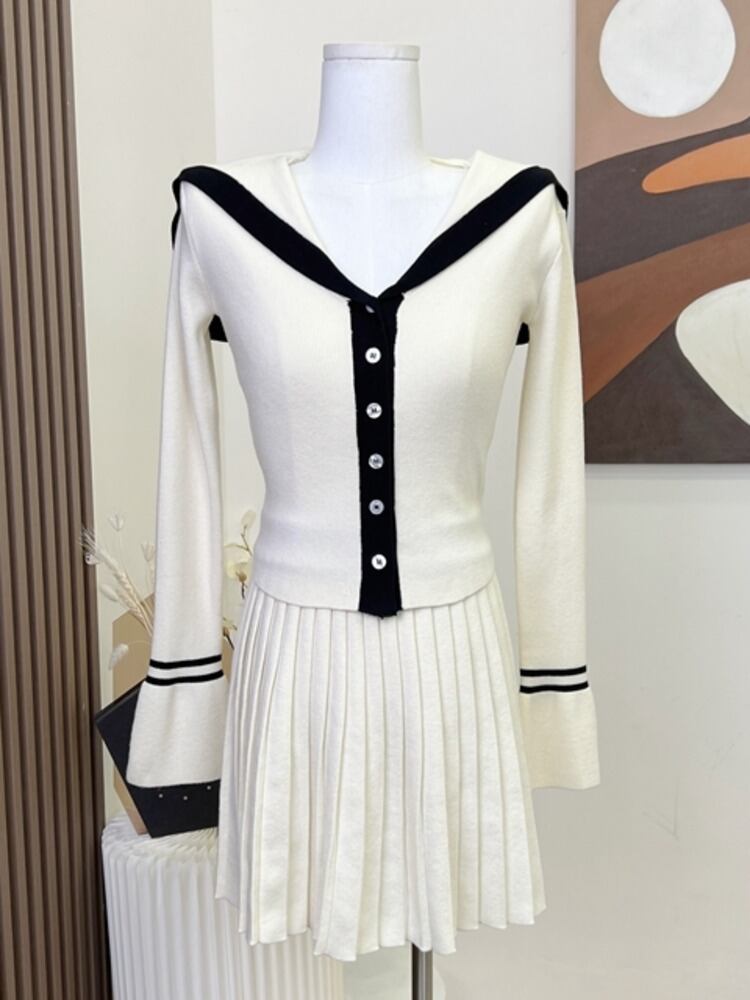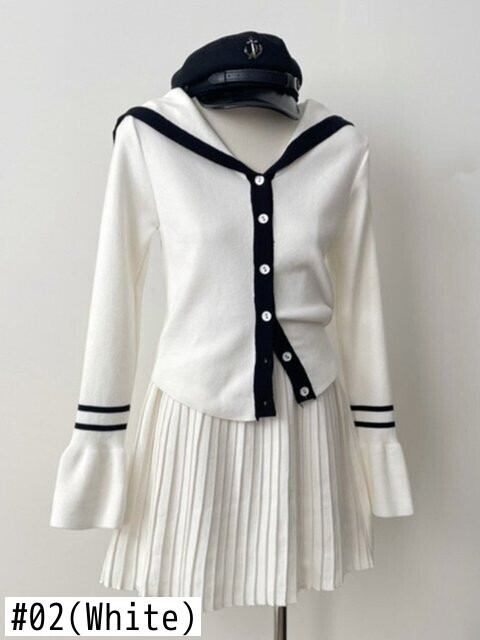 ガールズスイートニットツーピースセットクロップトップ+プリーツスカートセット秋プレッピースタイルセーターカーディガン&スカート2点衣装 大人ガーリー スウィート キュート カジュアル