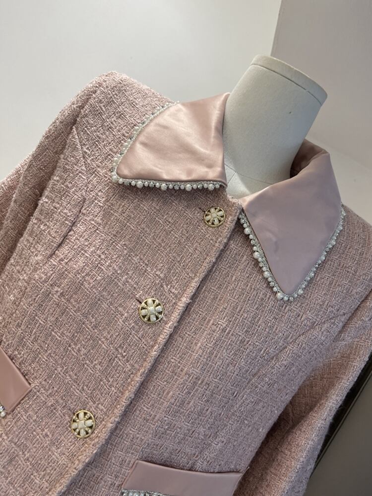 フランス高級ビーズ小さ香り良い 2 点セット衣装甘いジャケットコート + ロングスカートスーツ 大人ガーリー スウィート キュート カジュアル