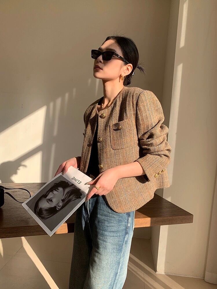 フレンチスモールフレグランスツイードジャケット秋冬ストリートウールコートアウター オータム 秋物 ウィンター 冬物
